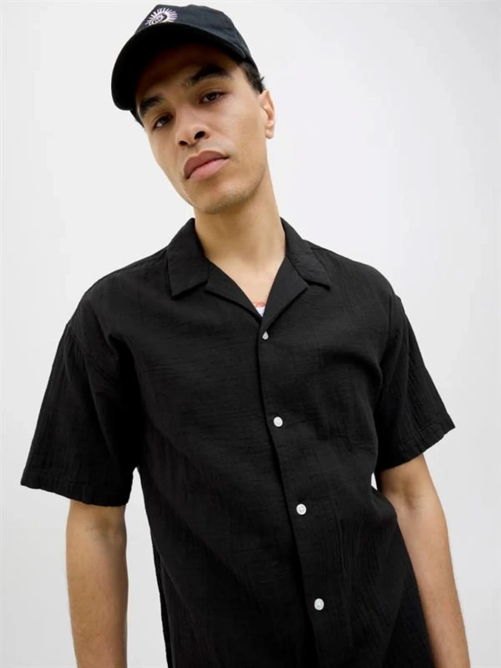 12274798 Müslin Kumaş Kısa Kollu Erkek Gömlek Siyah