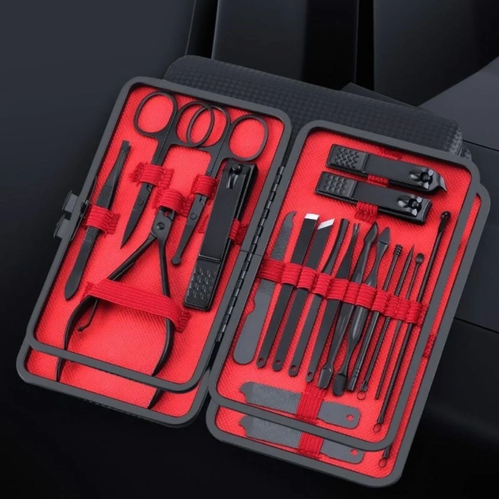 1 adetManikür Makası 1 adetBüyük Tırnak Makası 1 adetTırnak makası 1 adetManikür Makası 1 adetManikür Bıçağı 1 adetEğik Başlı Manikür Bıçağı 1 adetOval Ağızlı Manikür Bıçağı 1 adet Çatal Ağızlı Bıçak 1 adetÇift Taraflı Tırnak Törpüsü 1 adetTırnak Ucu Boşluğu 1 Adet Tırnak Üstü Deri Geri İtme ve Yuvarlama Çubuğu 1 Adet Cımbız 1 Adet Kaş Makası 1 Adet Burun Kılı Makası 1 Adet Akne İğnesi 1 Adet Kulak Temizleme Çubuğu: 1 Adet Kulak Kanal Temizleme Çubuğu 1 Adet Sıkma/Sıkıştırma Çubuğu