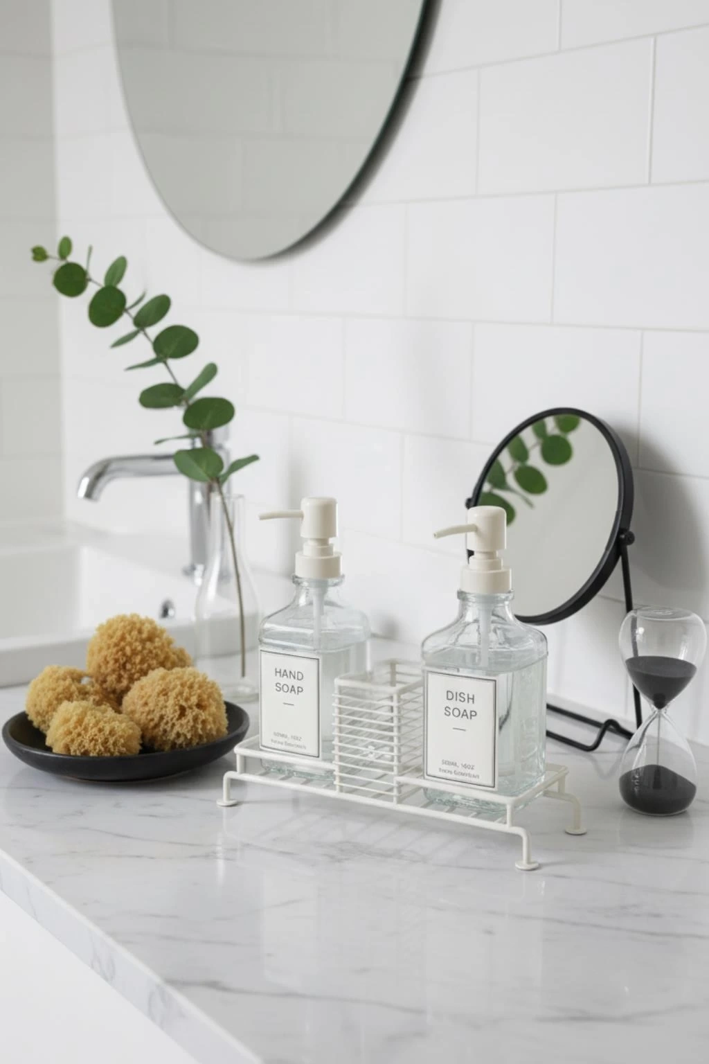 Ürün Hikayesi: Şık tasarımıyla banyonuza modern bir dokunuş katan bu 2’li cam ayaklı sıvı sabunluk seti, hem estetik hem de kullanışlı yapısıyla öne çıkar. Beyaz rengi sayesinde her banyo dekoruna uyum sağlar.