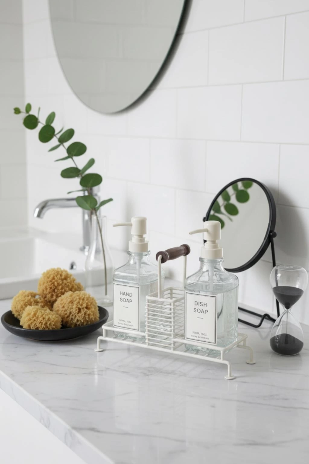 Ürün Hikayesi: Banyonuza şıklık ve zarafet katacak bu cam ayaklı sıvı sabunluk seti, hem estetik hem de işlevselliği bir arada sunar. Beyaz rengiyle her banyo dekorasyonuna uyum sağlar.