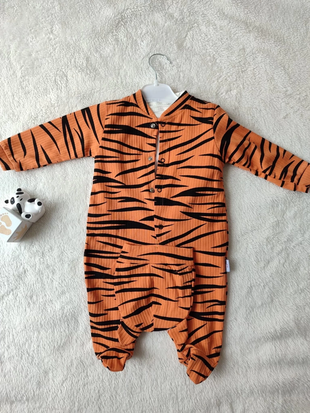 3-6-9-12 Ay Pooh Desenli Zebra Çizgili Şapkalı Sweatli 3lü Kız Erkek Bebek Tulumu(sarı) Sarı