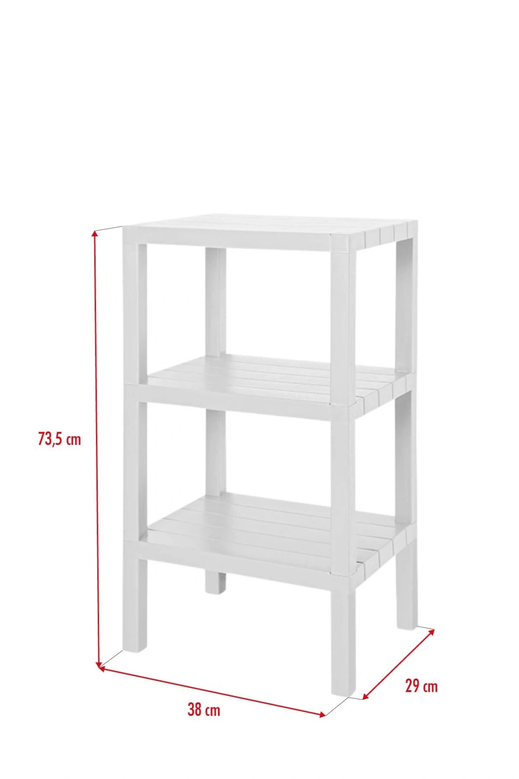 Ürün Hikayesi: 3 Katlı Beyaz Raf, kompakt ölçüleriyle küçük alanlarda kitaplık veya banyo düzenleyicisi olarak ideal bir kullanım sağlar. Fonksiyonel yapısı sayesinde evinizin her köşesine uyum sağlar.