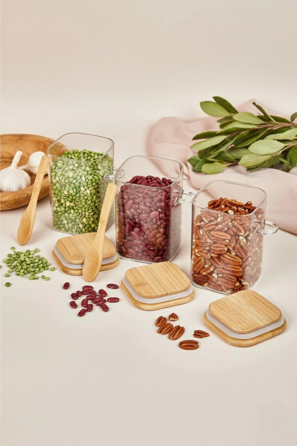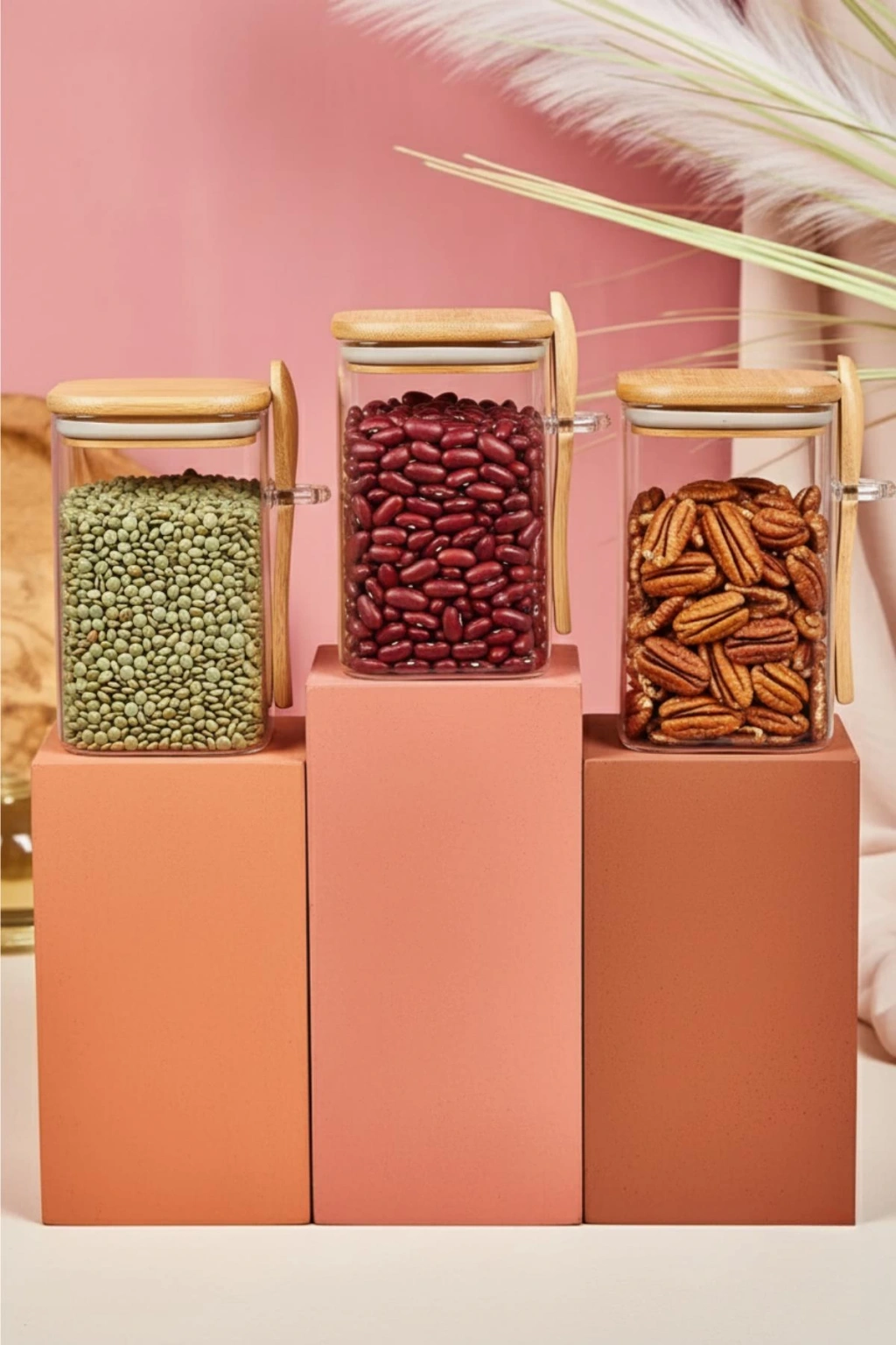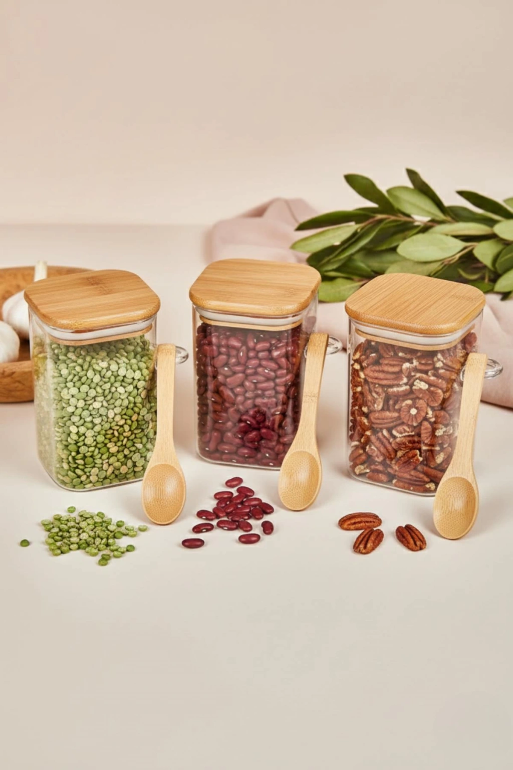 Fonksiyonel ve şık tasarımıyla öne çıkan bu 3’lü cam kavanoz seti, yanında kaşıklı yapısıyla mutfakta pratik kullanım sunar. Baharatlardan kahveye, kuruyemişlerden şekere kadar birçok ürünü sağlıklı ve düzenli şekilde saklamanıza yardımcı olur.