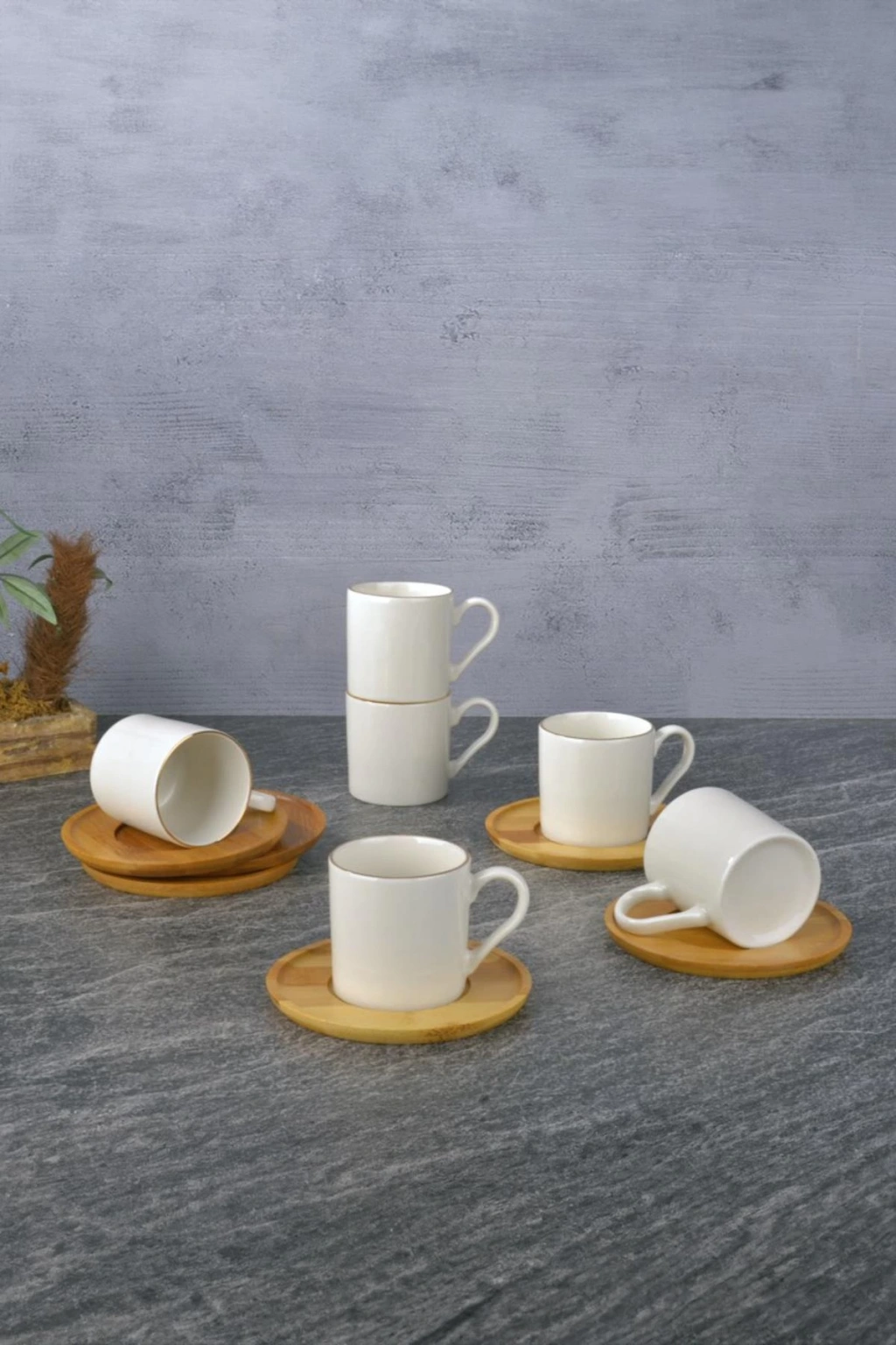 Şık bambu tabakları ve zarif porselen fincanları ile kahve keyfinizi taçlandırın. 6 parçadan oluşan bu set, hem günlük kullanım hem de özel davetler için ideal bir sunum imkanı sağlar.
