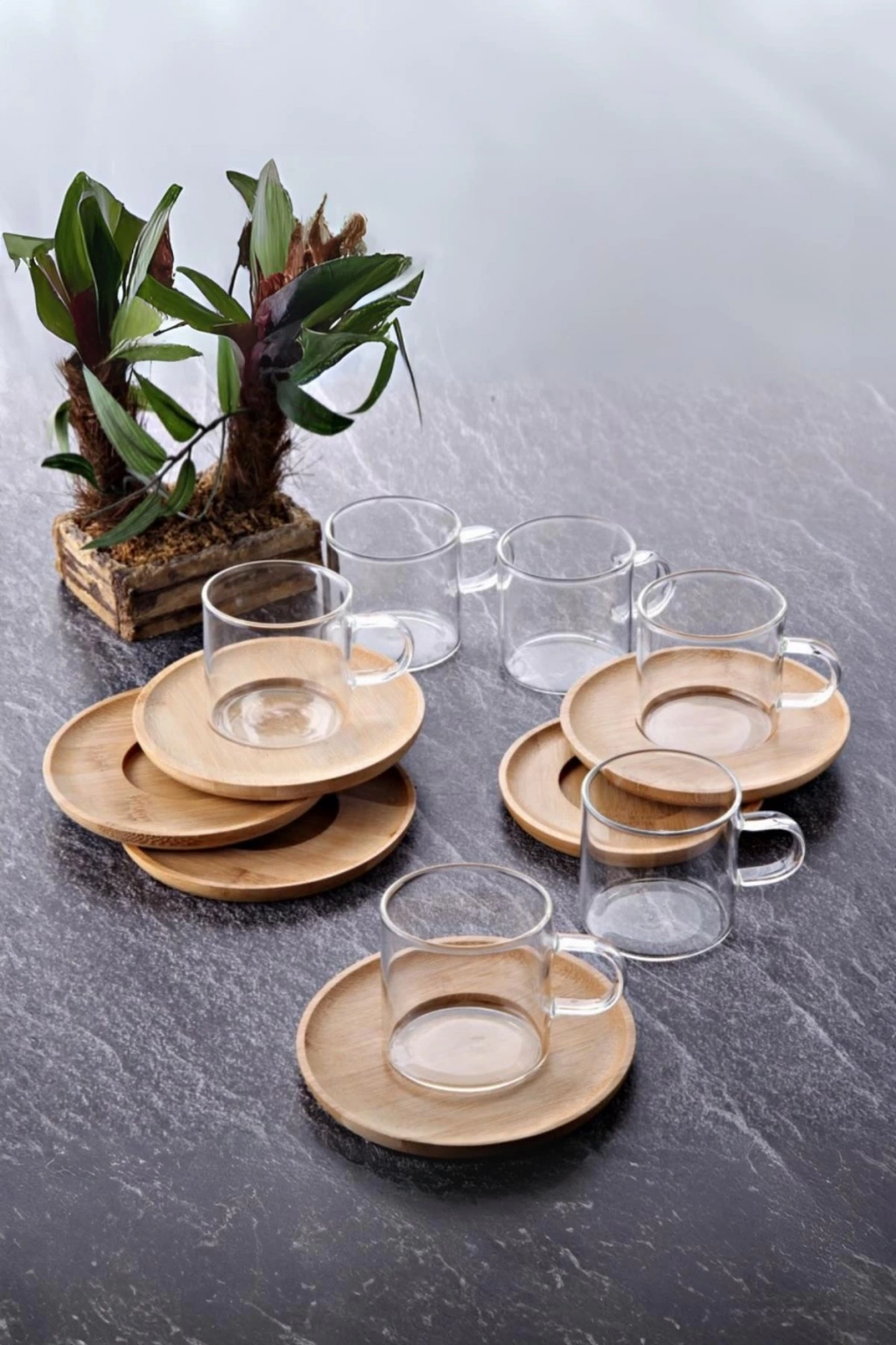 Şeffaf camın zarafeti ve bambunun doğallığı bir arada! 6’lı cam çay fincanı seti, misafirlerinize şık bir sunum yapmanızı sağlar. Hem günlük kullanım hem de özel davetler için idealdir.