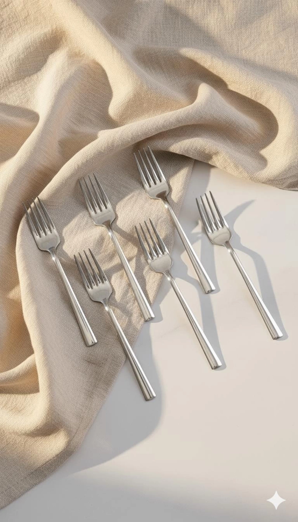 Ürün Hikayesi: Zarif tasarımı ve sağlam paslanmaz çelik yapısıyla bu 6 parçalık yemek çatal seti, sofralarınıza şıklık ve dayanıklılık katar. Günlük kullanım ve özel davetler için ideal olup uzun ömürlüdür.