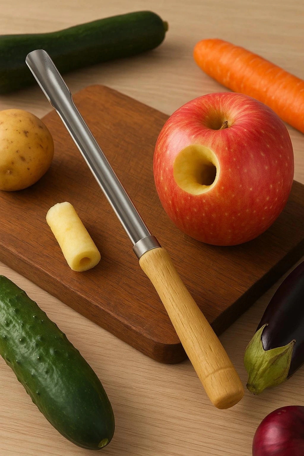 Doğal ahşap saplı uzun oyacak, sebze ve meyveleri kolayca oymanıza yardımcı olur. Paslanmaz çelik bıçağı dayanıklı kullanım sunarken, ergonomik sap yapısı elinizde kaymaz ve güvenli bir kullanım sağlar.