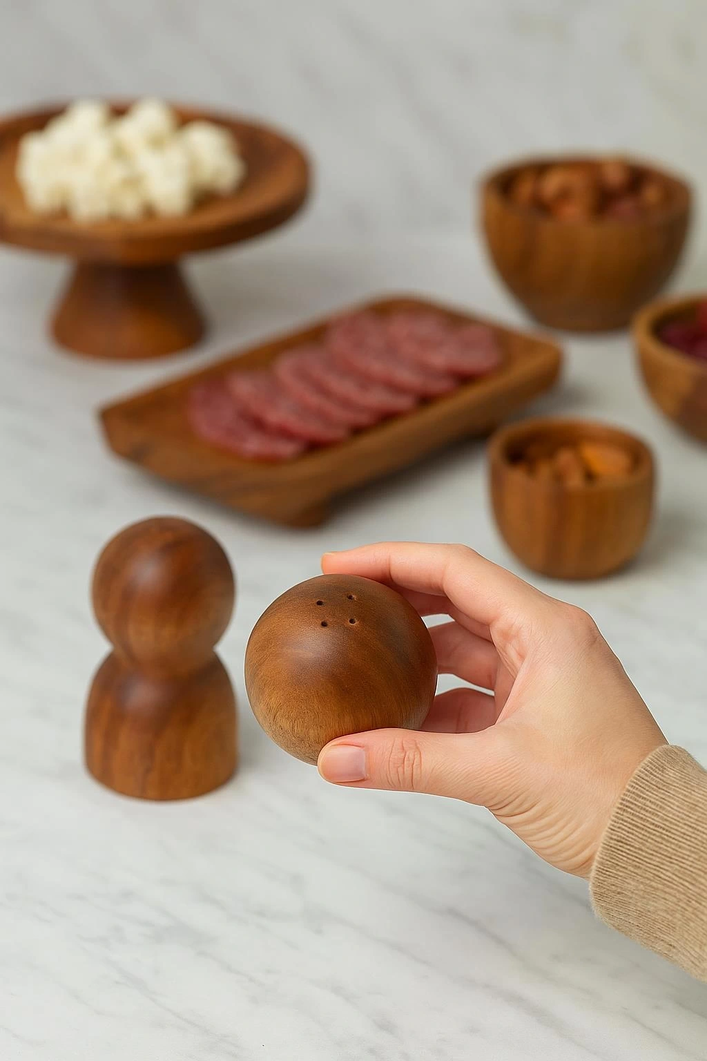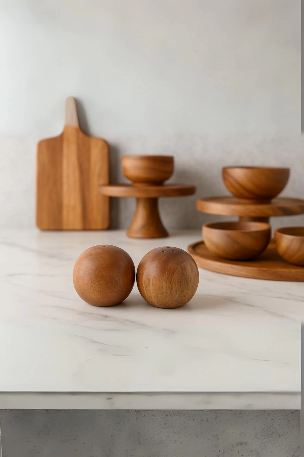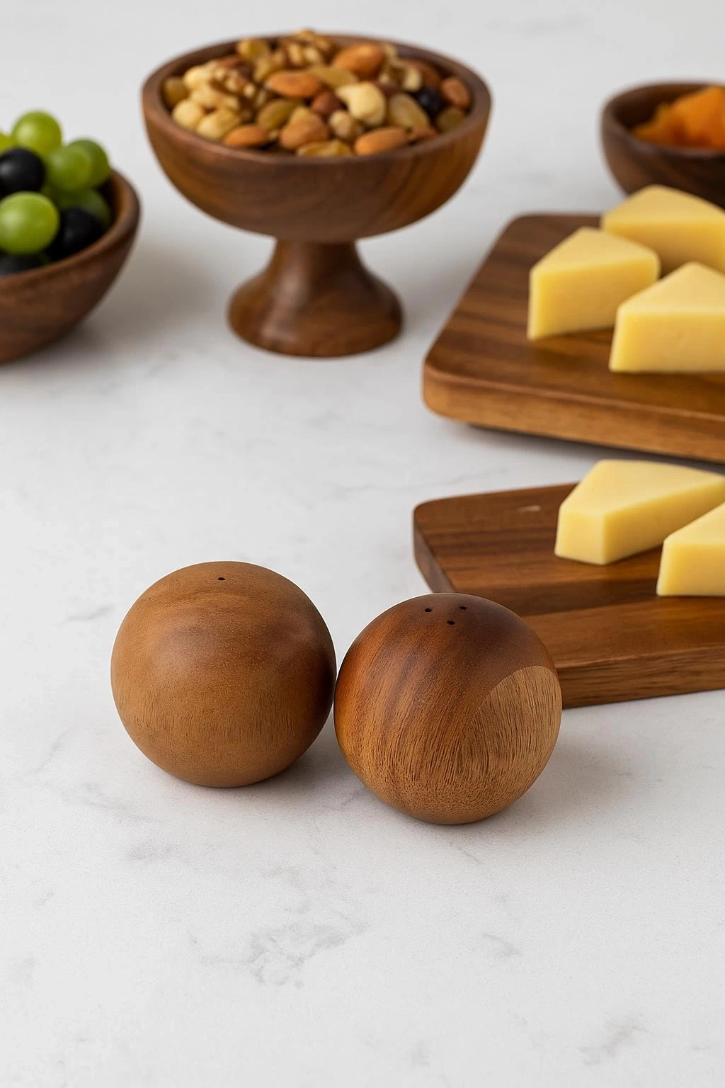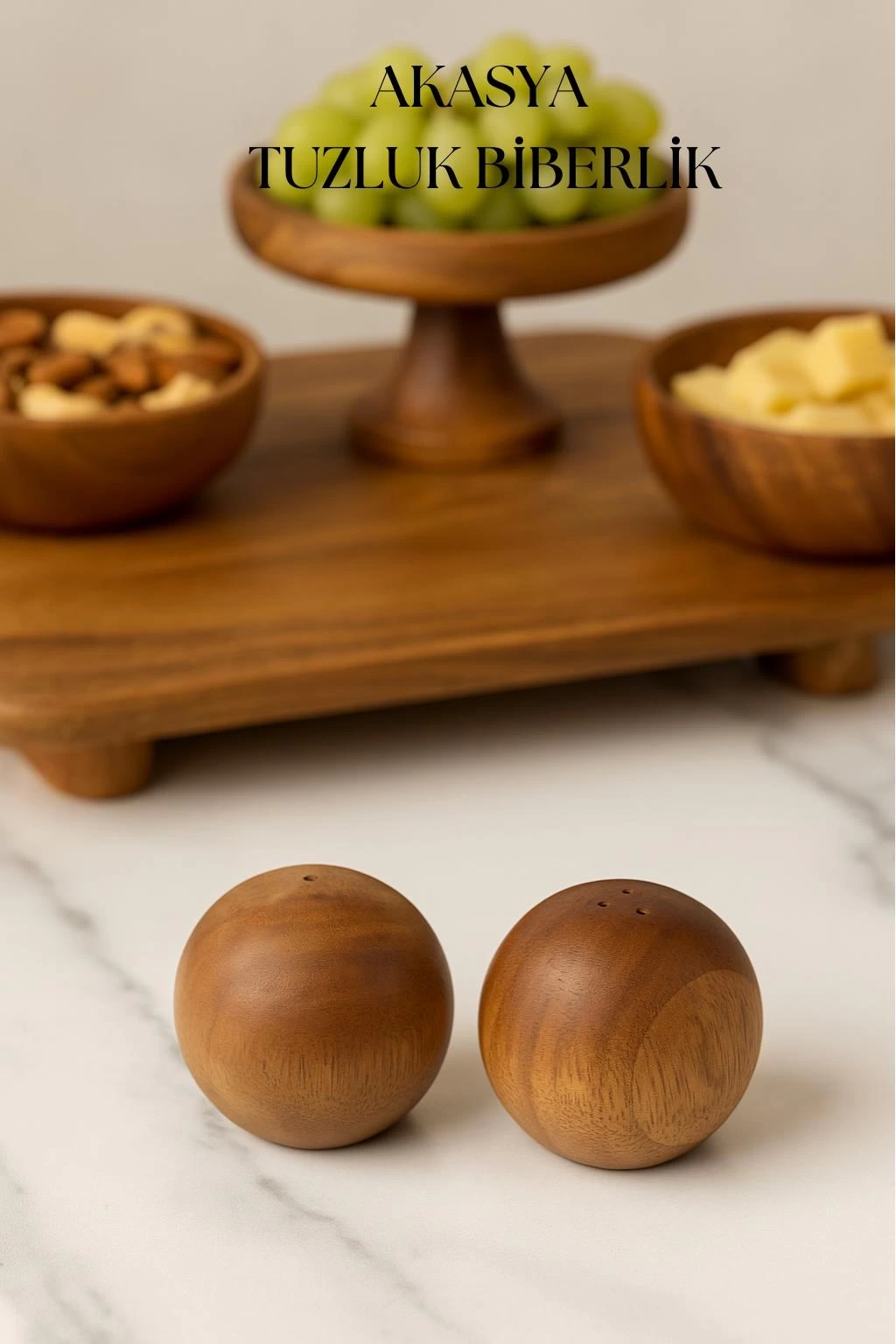 Ürün Hikayesi: Akasya ağacının doğal güzelliğiyle tasarlanan bu 2’li top tuzluk biberlik seti, sofralarınıza hem zarafet hem de doğallık katıyor. El yapımı görünümüyle mutfak dekorunuza uyum sağlar.