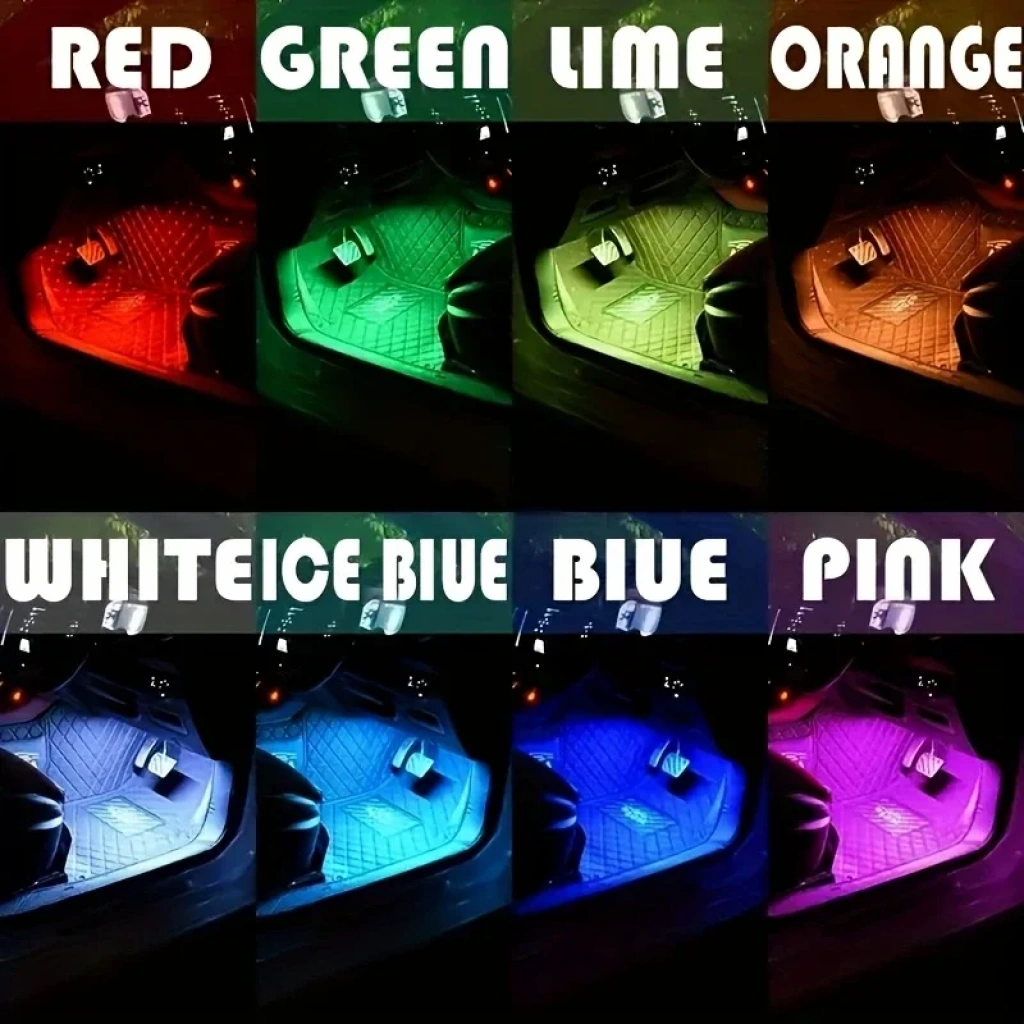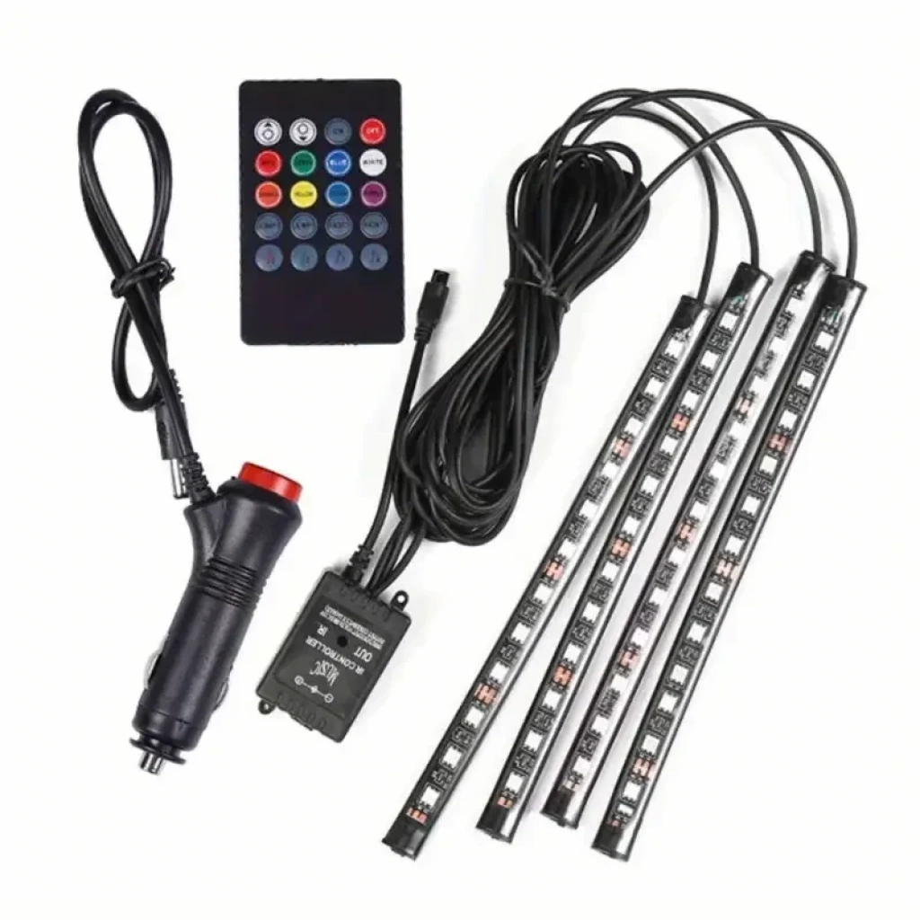 Ayak Altı Led Kumandalı Araç Içi Aydınlatma 4 Lü Sese Duyarlı Renk Değiştirme Özellikli