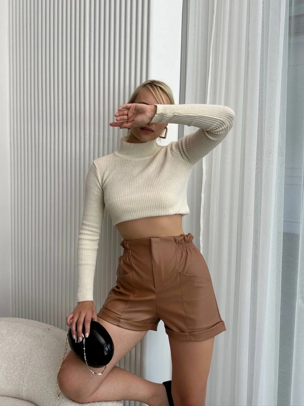 Şıklık ve rahatlık arayan kadınlar için ideal bir seçenek olan Beli Lastikli Deri Şort Kahve H24605, gardırobunuzun vazgeçilmez parçalarından biri olmaya aday!
