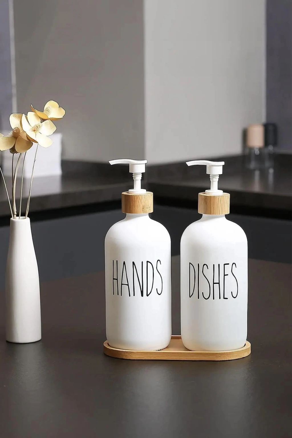 Ürün Hikayesi: Beyaz cam şişelerden oluşan bu ikili sıvı sabunluk seti, bambu altlığı ile zarif ve modern bir görünüm sunar. Hem mutfak hem de banyo kullanımı için şık bir seçenektir.