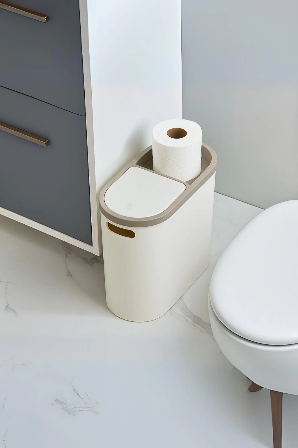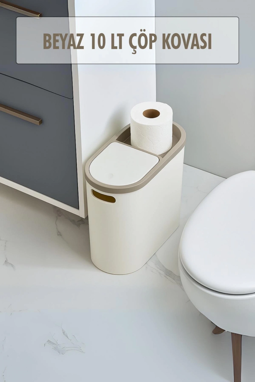 Modern tasarımlı beyaz çöp kovası, WC kağıtlık özelliği ile banyonuzda pratiklik sunar. Hem ev hem de ofis kullanımına uygundur. Kapaklı yapısı kötü kokuları engeller ve hijyenik bir kullanım sağlar.