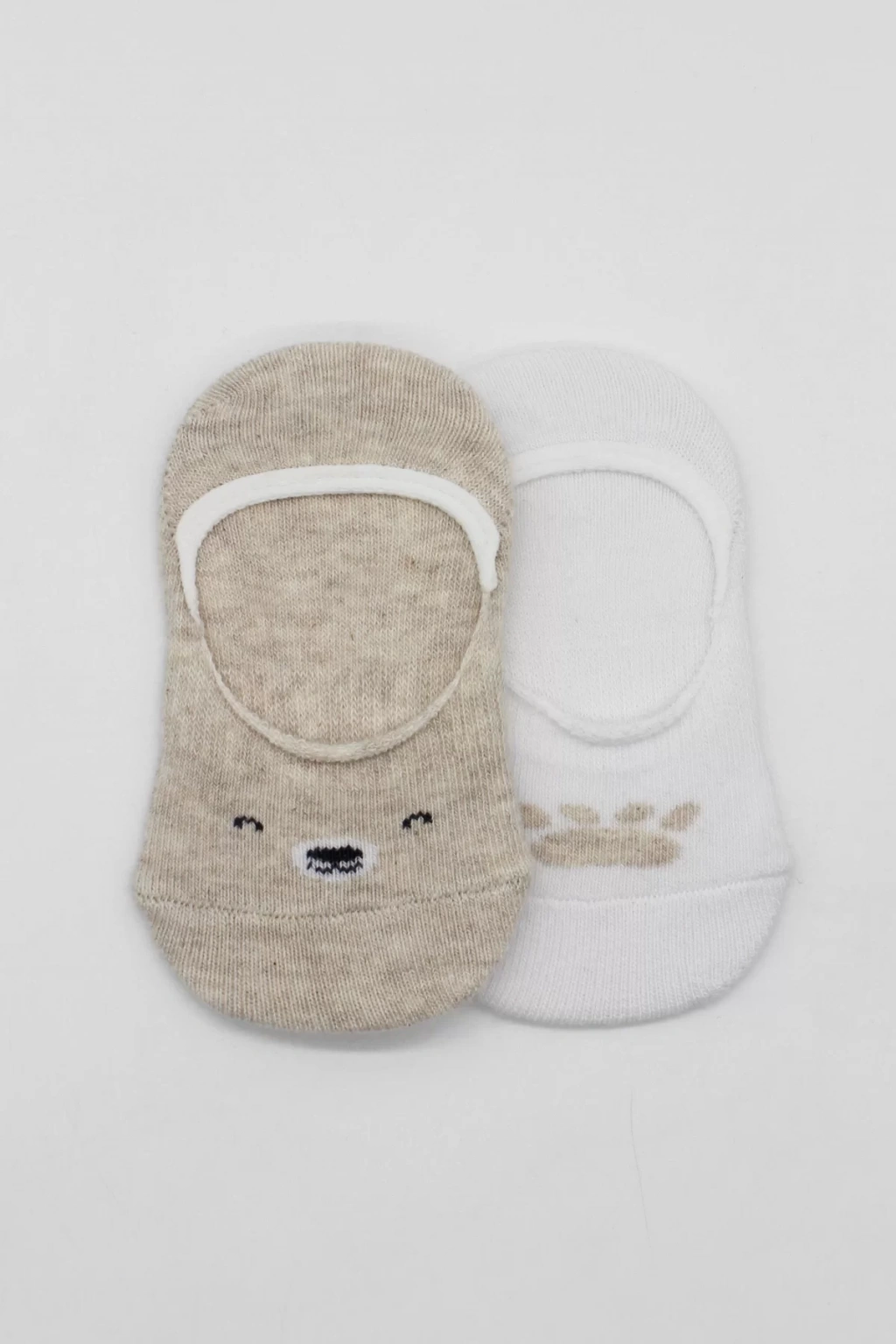 Bistyle 2'li Babet Cute Face Penye Çorap 30103 Bej Beyaz