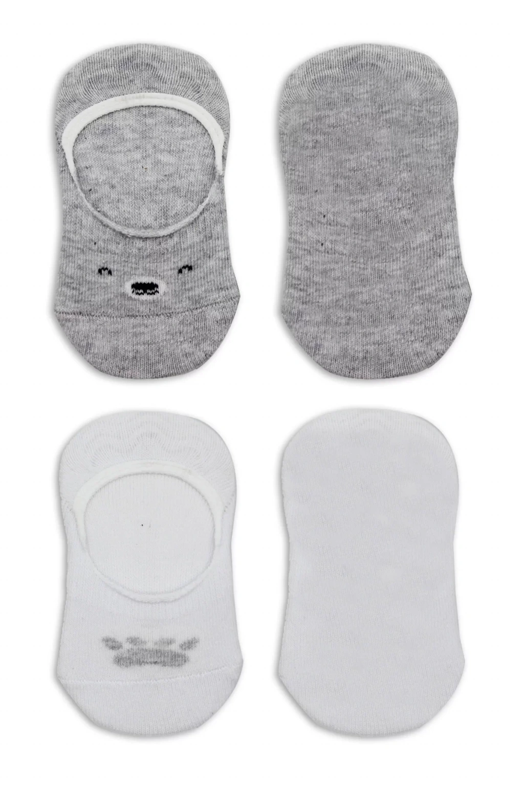 Bistyle 2'li Babet Cute Face Penye Çorap 30103 Gri Beyaz