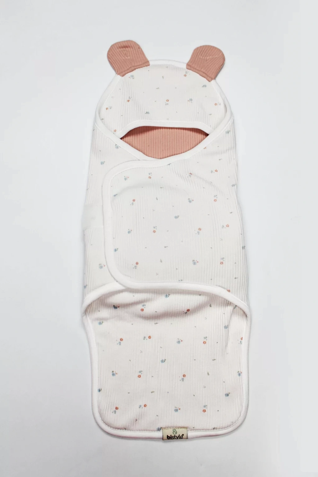 Yenidoğan İlkbaharın Tavşanı Nakışlı Çıt Çıt Kapamalı Bebek Kundak Ekru