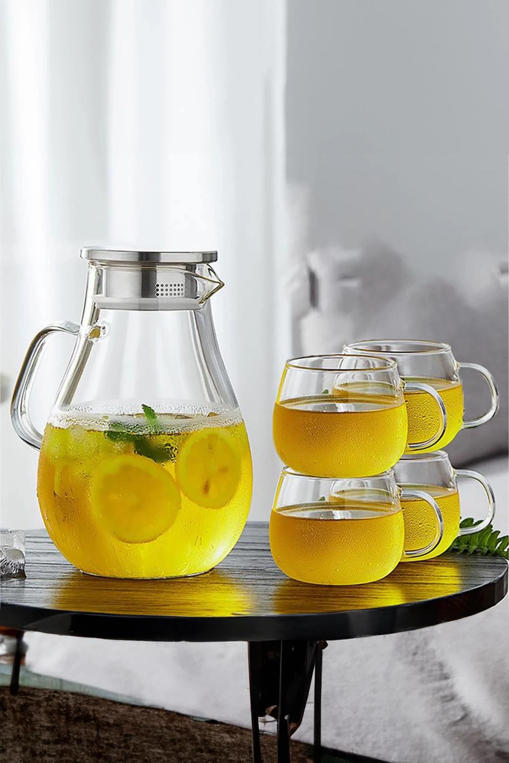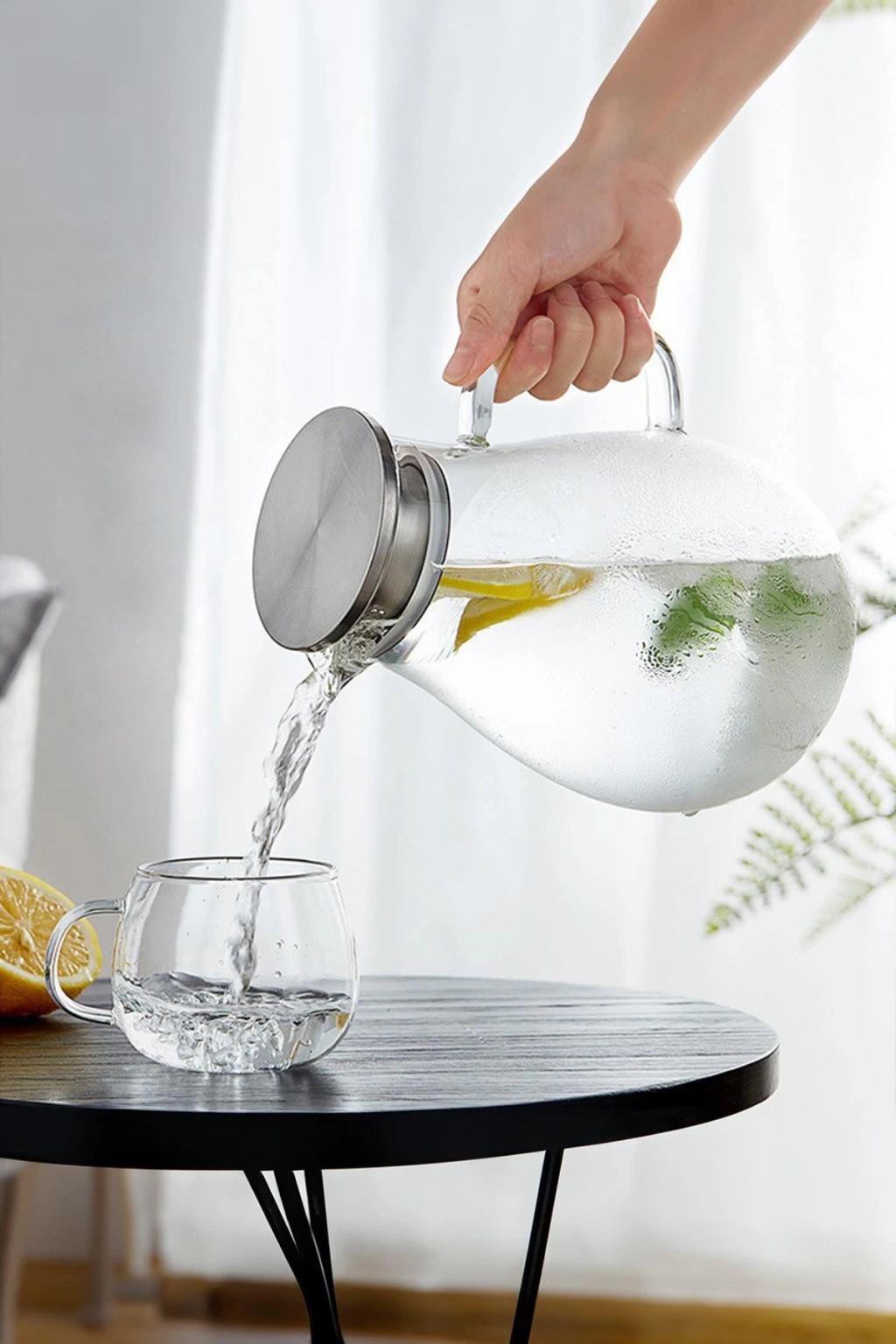 Yüksek ısıya dayanıklı borosilikat camdan üretilen bu sürahi, geniş 2 litrelik hacmiyle kalabalık sofralar için ideal bir sunum ürünüdür. Hem günlük kullanımlar hem de özel davetlerde şık ve işlevsel bir tercih sunar.