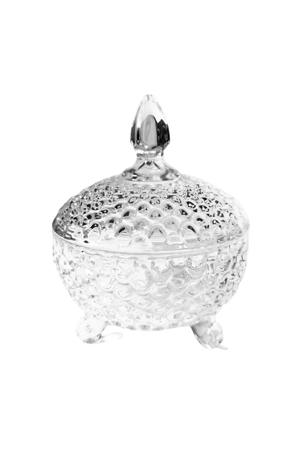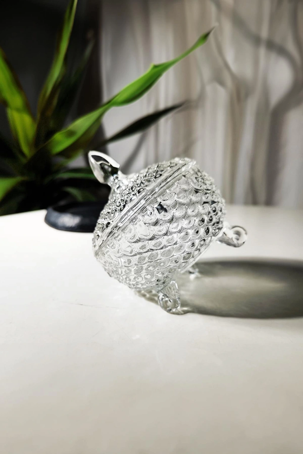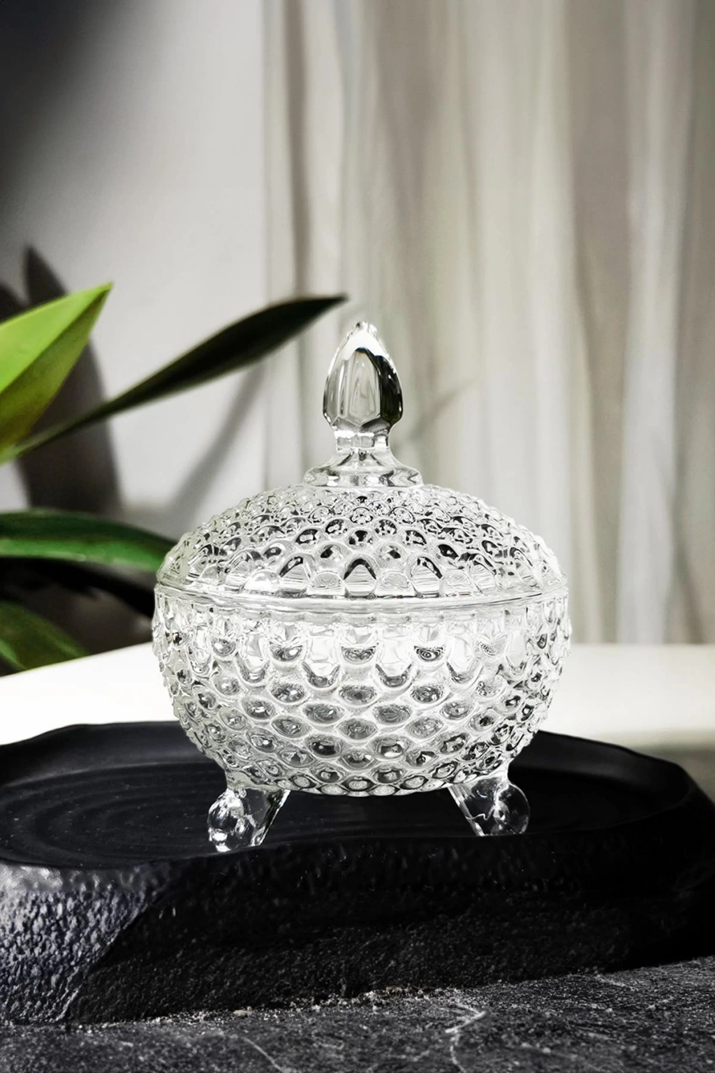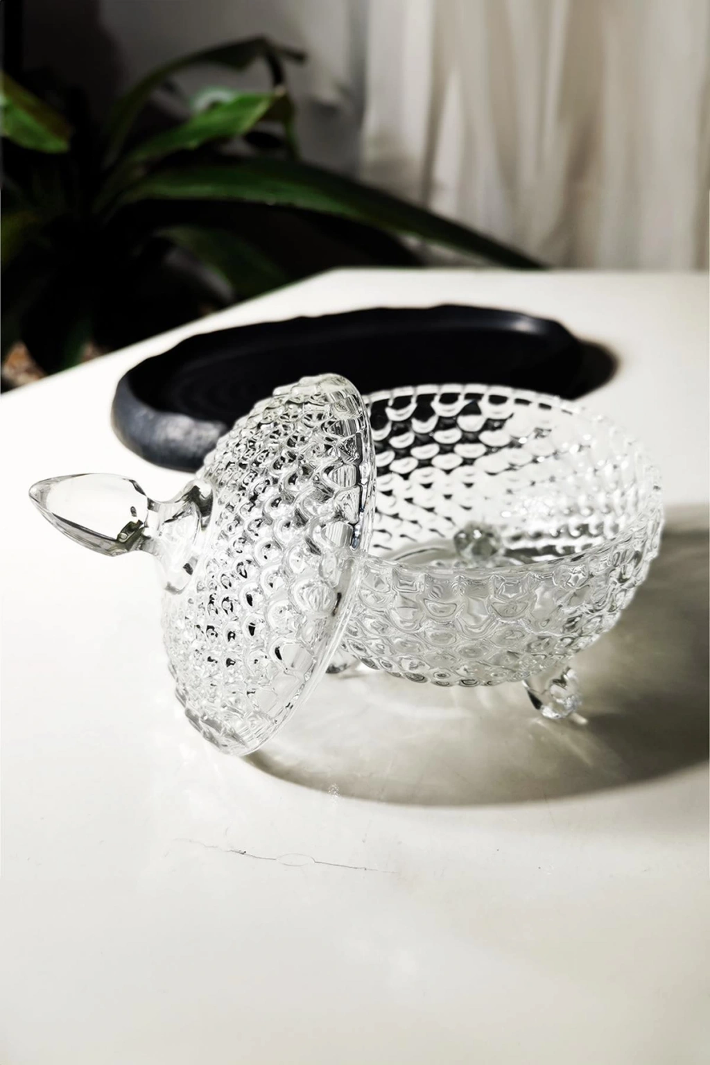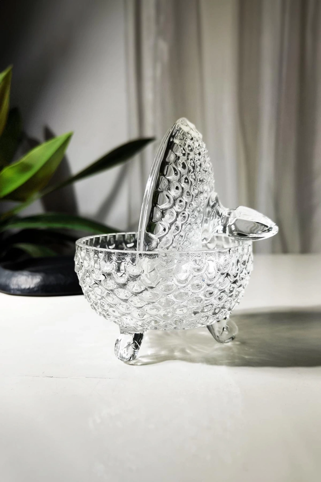 Zarif cam tasarımıyla sofralara estetik katan bu küçük boy şekerlik, hem şeker hem de lokum sunumları için uygundur. Şık kapaklı yapısı sayesinde ikramlarınıza özel bir dokunuş katar.