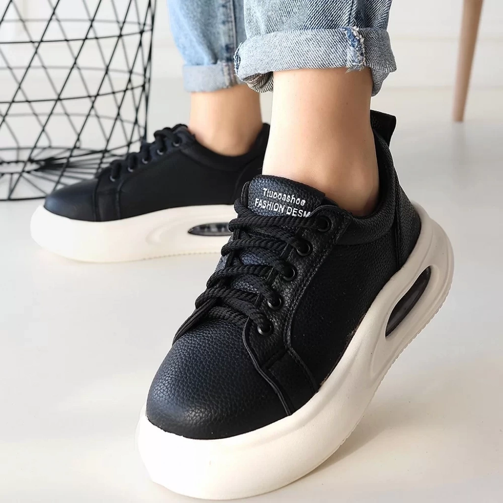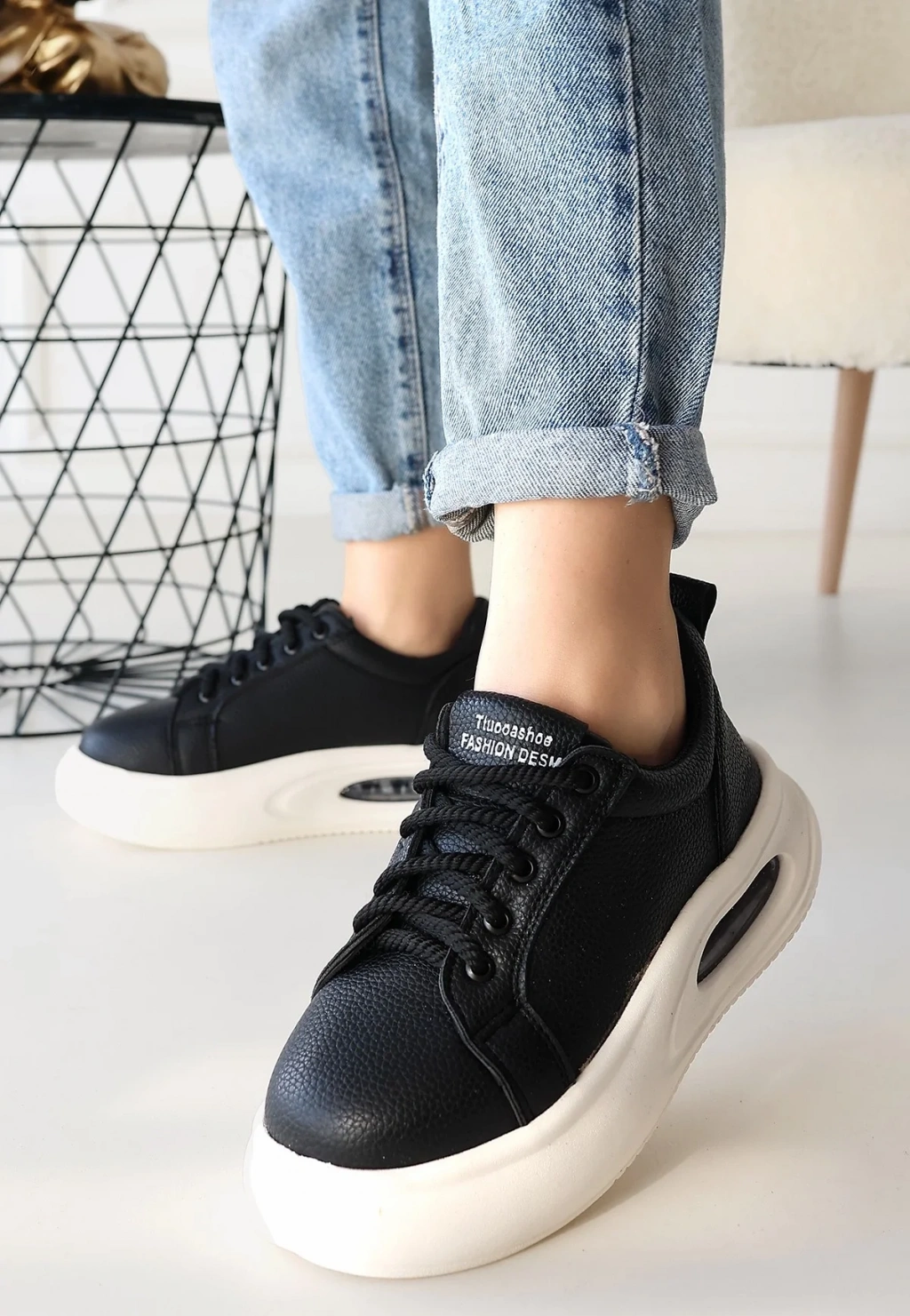 Chris Siyah Cilt Bağcıklı Spor Ayakkabı