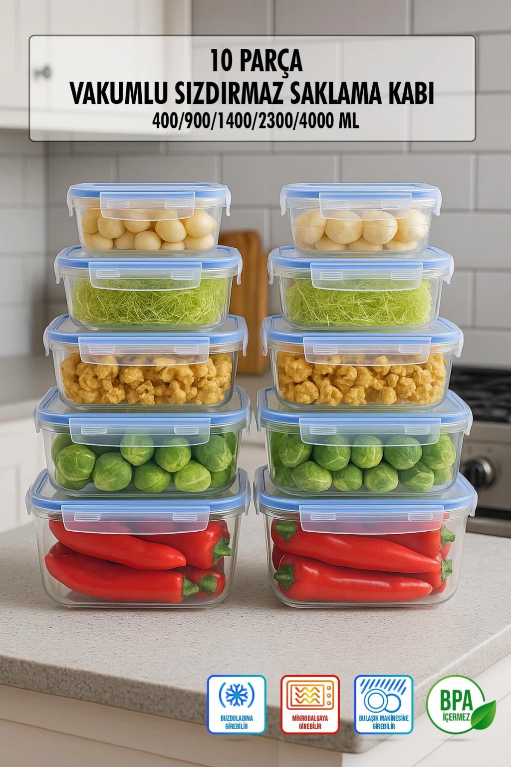Ürün Hikayesi: Modern mutfaklarda gıdaların uzun süre taze kalabilmesi için özel olarak tasarlanmış bu dikdörtgen contalı vakumlu saklama seti, şeffaf yapısı sayesinde içerikleri kolayca görmenizi sağlar. Hava almaz yapısı ile yiyeceklerinizi güvenle korur.