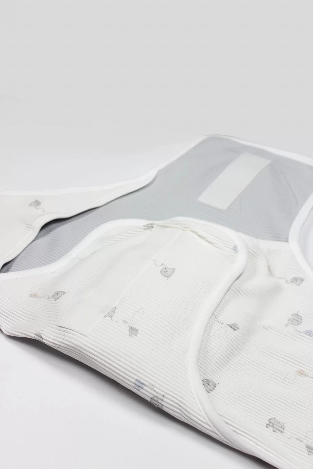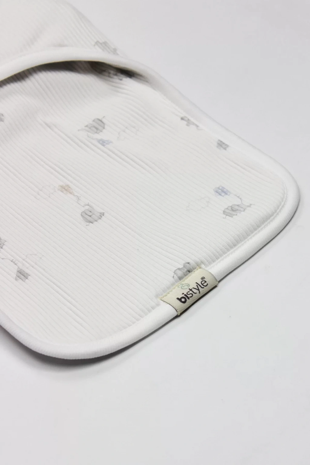Yenidoğan Mutlu Fil Ailesi Nakışlı Çıt Çıt Kapamalı Bebek Kundak Ekru-mavi