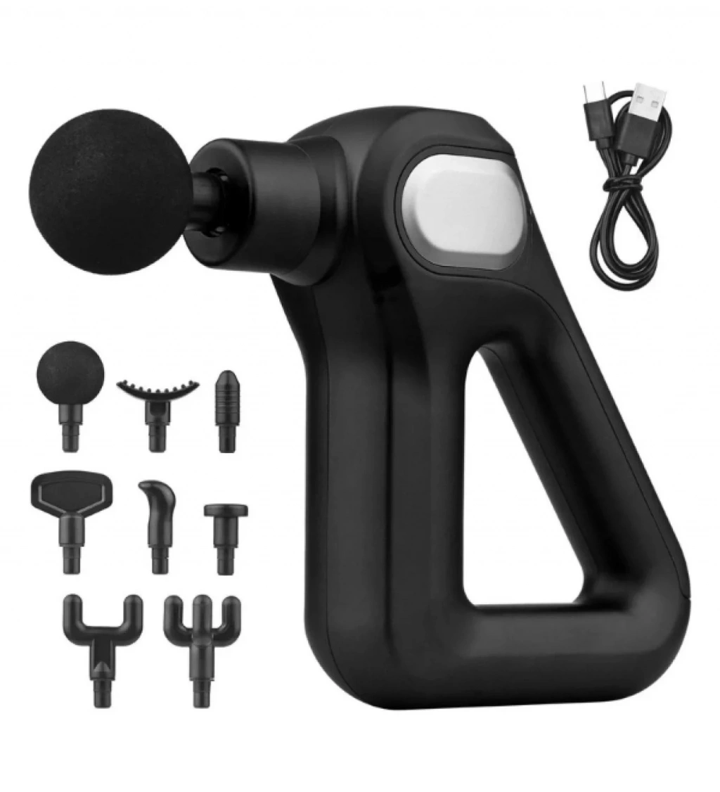 Masaj Aleti 30W Motorlu Derin Doku Kas Masaj Aleti 8 Kademeli Masajı Type-C Hızlı Şarj Girişli 8 Farklı Başlıklı KH-750 Siyah