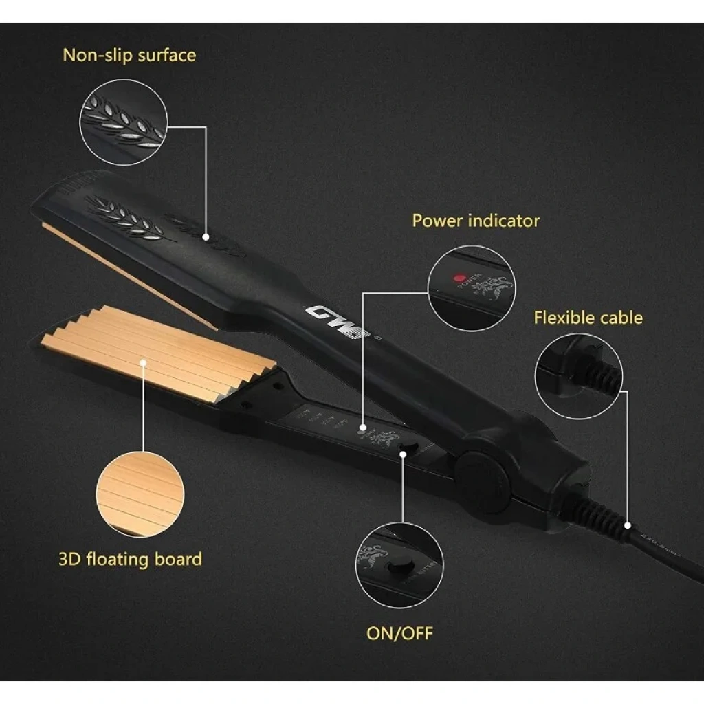 Zikzak dalgaları ve hacim oluşturur. Yüksek kaliteli, antistatik seramik turmalin kaplamalı saçlar için 4 kat