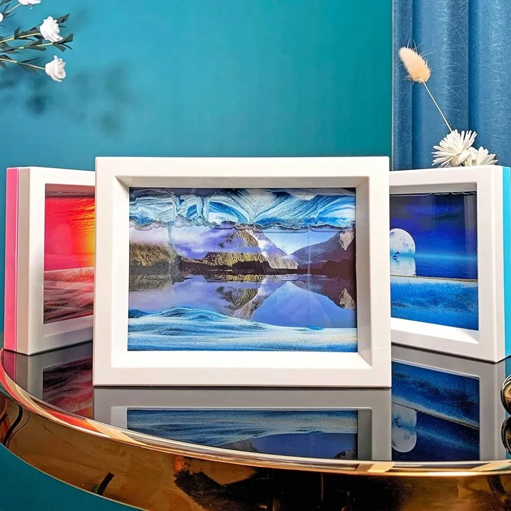 Hareketli Kum Resim İllüzyon Doğal Manzara 2 Yüz Çerçeveli 3d Görüş Masaüstü Sanat Aynalı