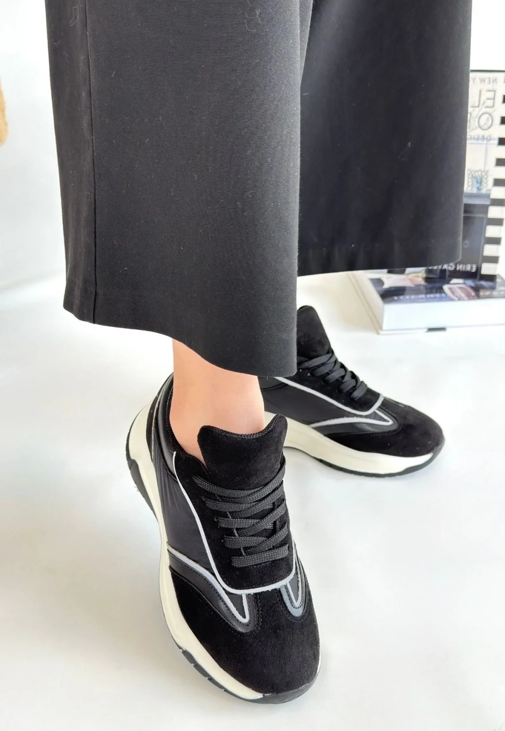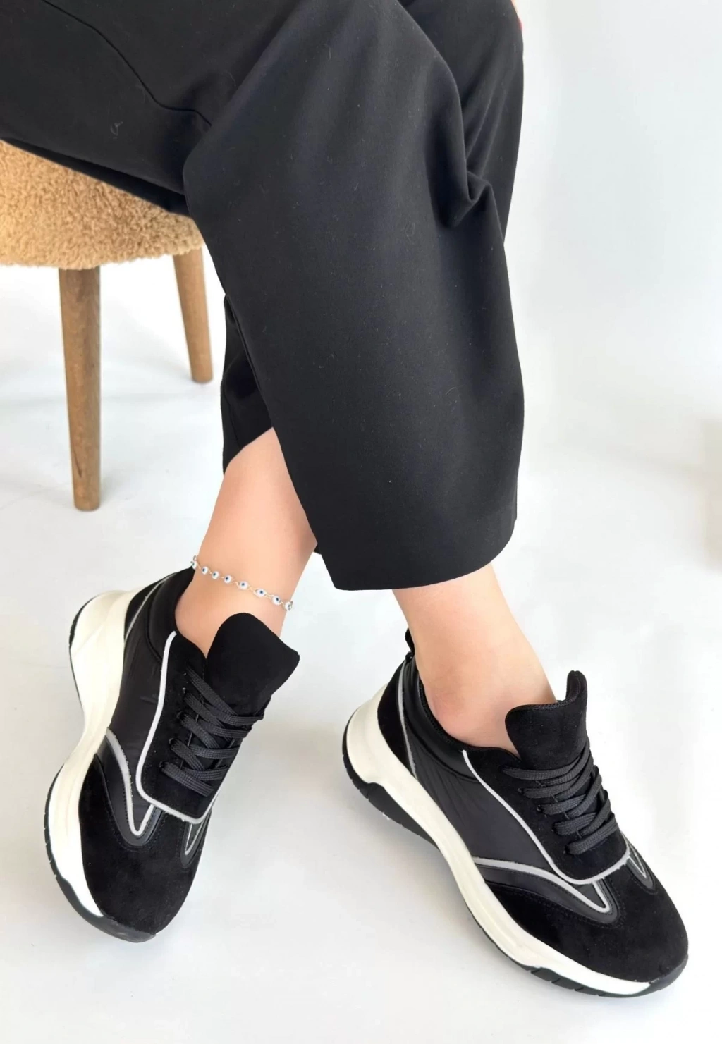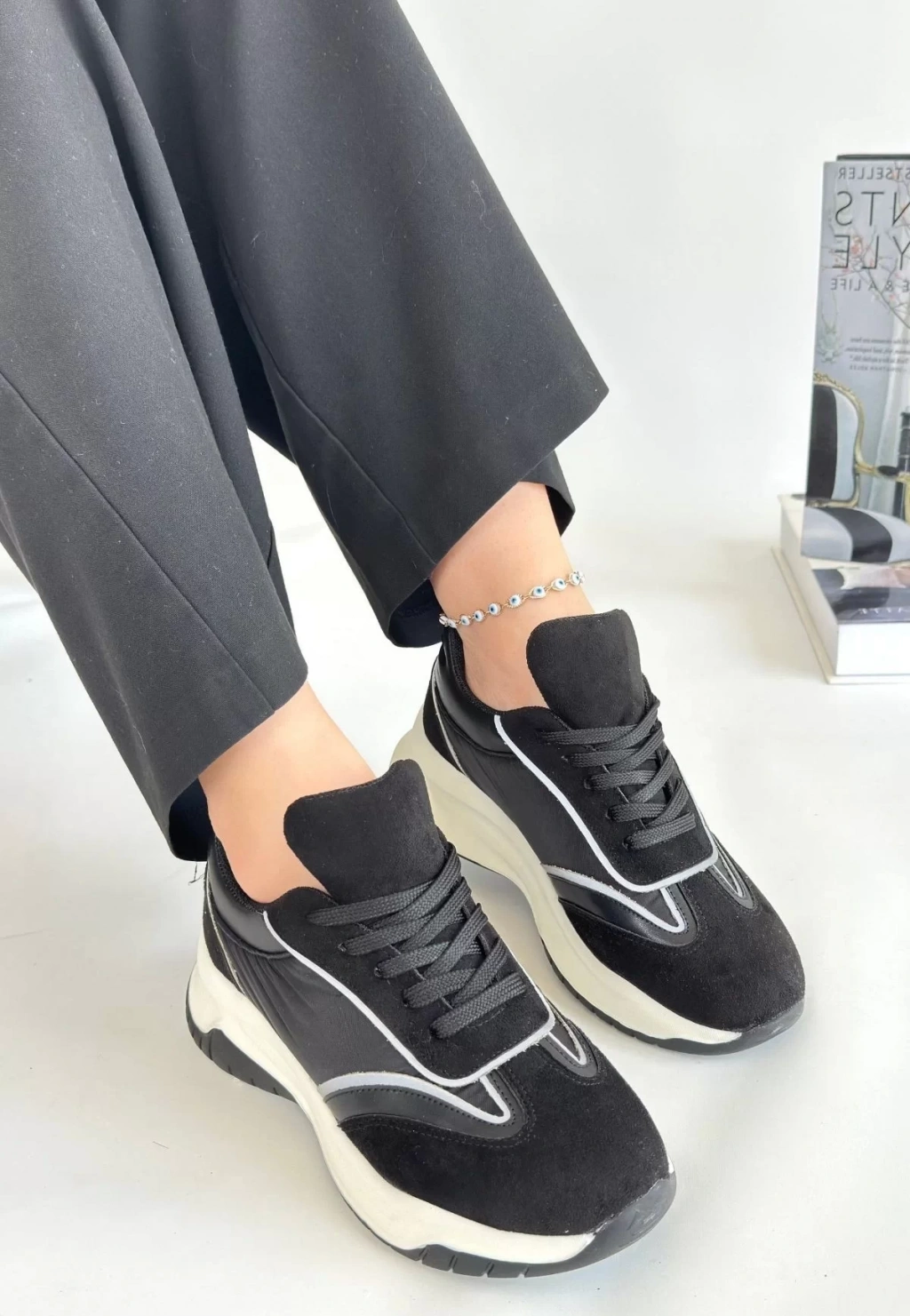 Mark Siyah Cilt Bağcıklı Spor Ayakkabı