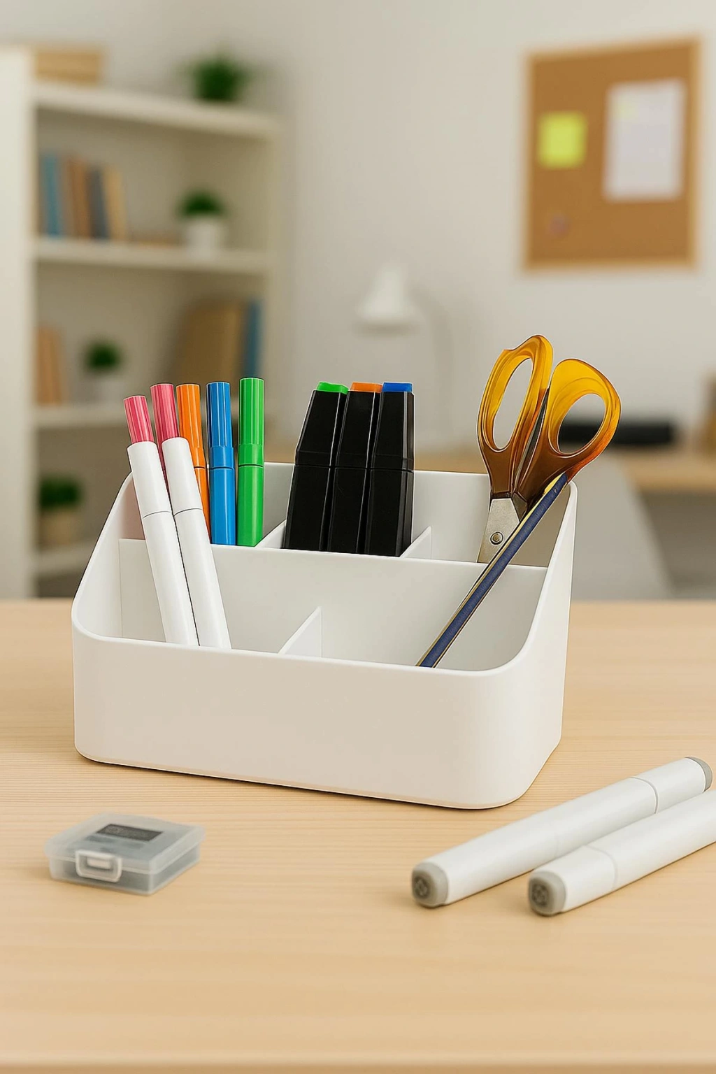 Ürün Hikayesi: Çalışma alanınızı düzenli ve şık hale getirmek için tasarlanmış bu masaüstü kalemlik, kalemlerden küçük ofis gereçlerine kadar birçok ürünü organize etmenize yardımcı olur. Modern tasarımı ile masanıza estetik bir görünüm kazandırır.