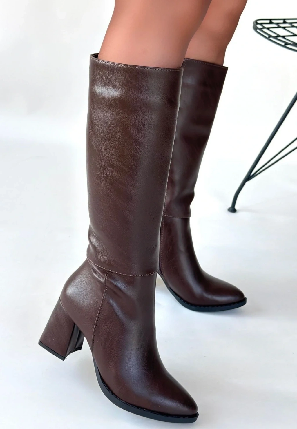 Detay: Topuklu Diz Altı Yandan Fermuarlı Çizme