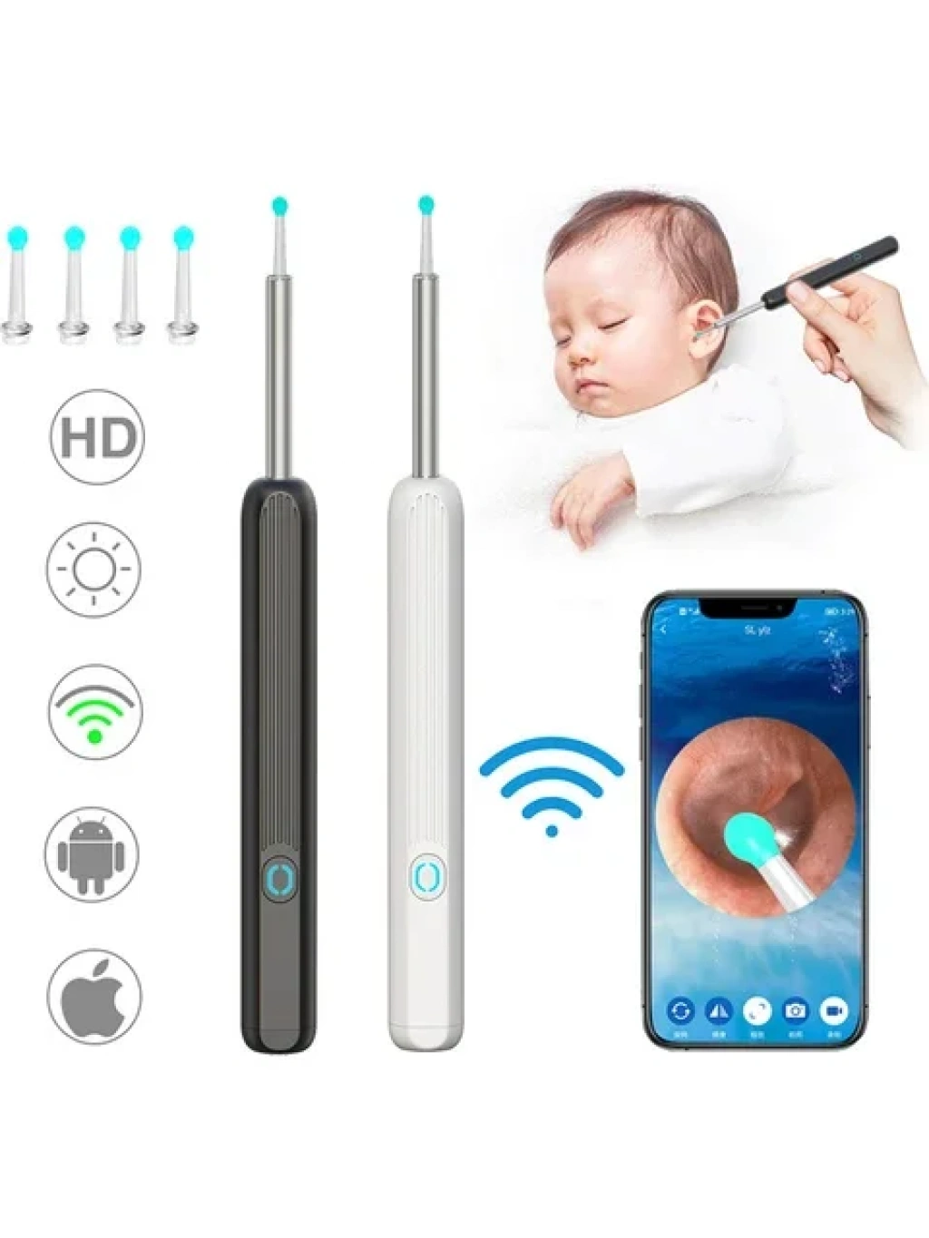 Akıllı Görüntülü LED Işık Kablosuz Kulak Temizleyici