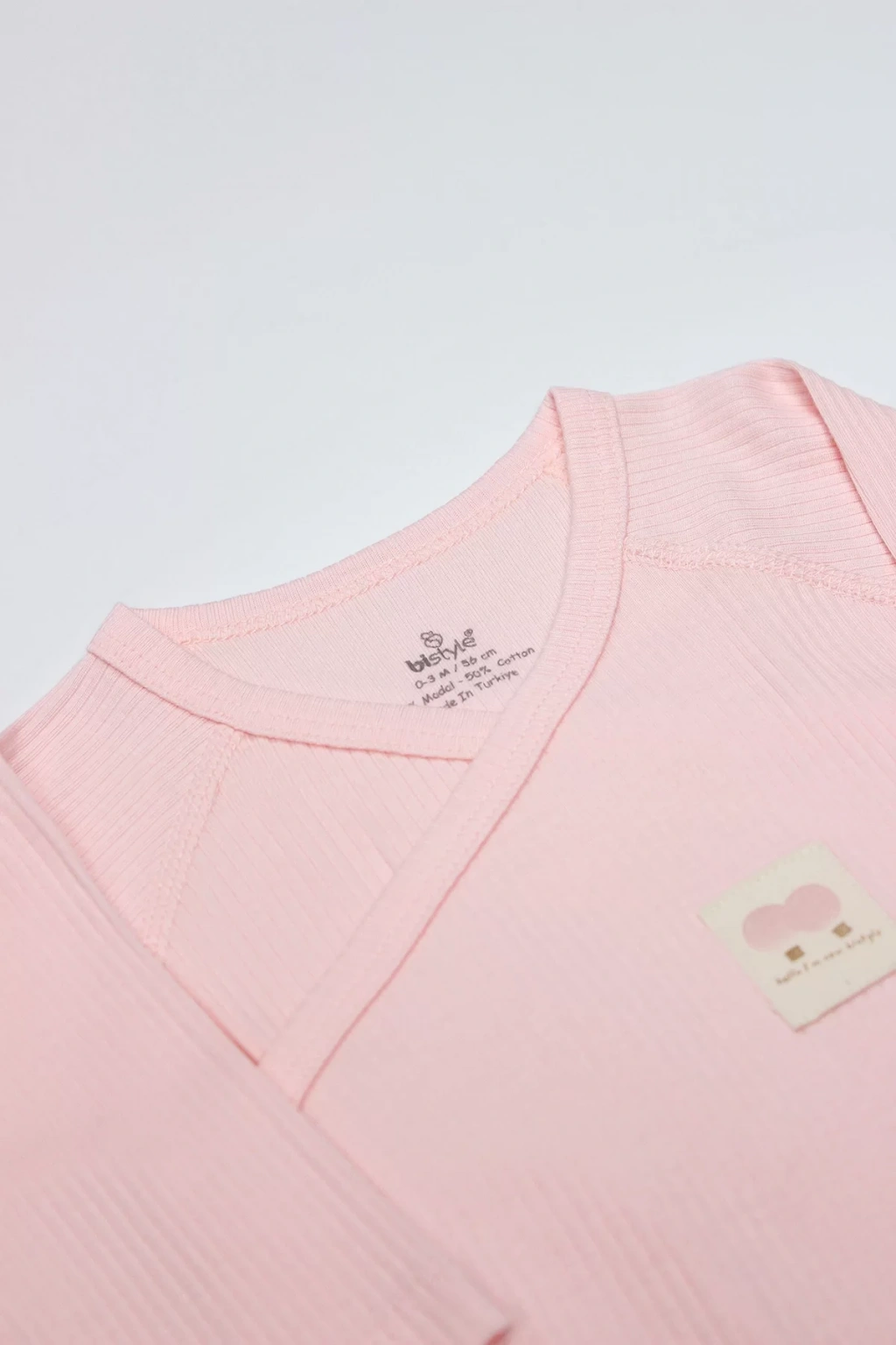 Bistyle Organik Natural Basic Style Kruvaze Uzun Kol Body Bs17102 Pembe