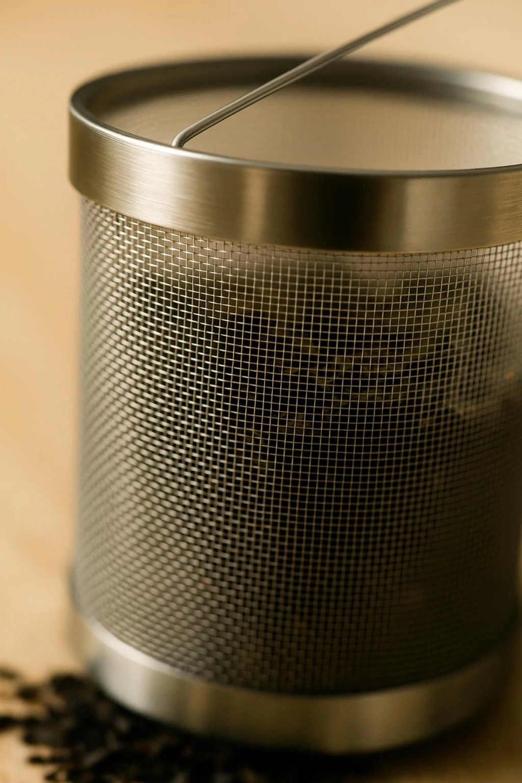 Paslanmaz çelikten üretilmiş küçük boy çay süzgeci, pratik kullanımı ve dayanıklı yapısıyla mutfakta uzun süreli kullanım sunar.