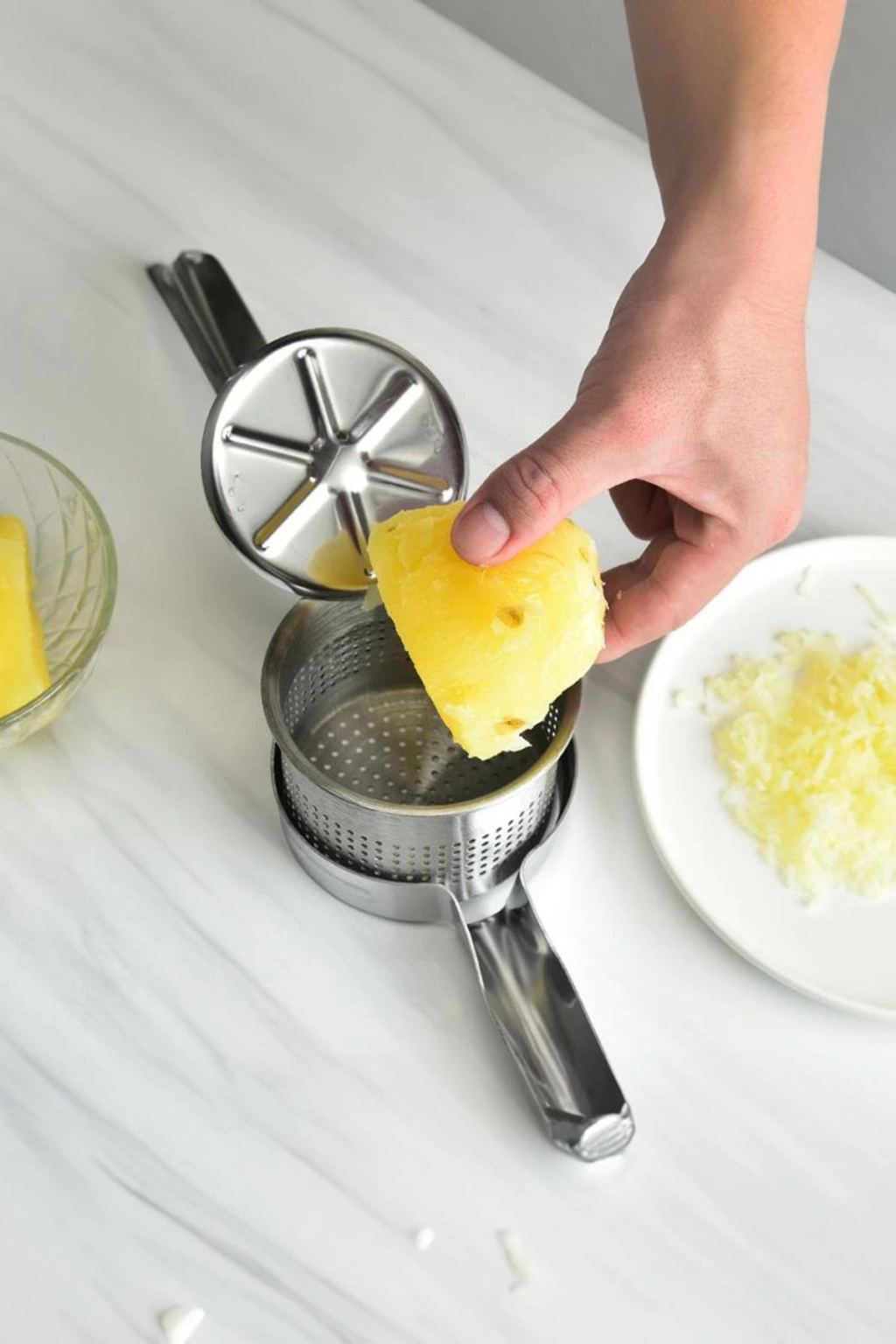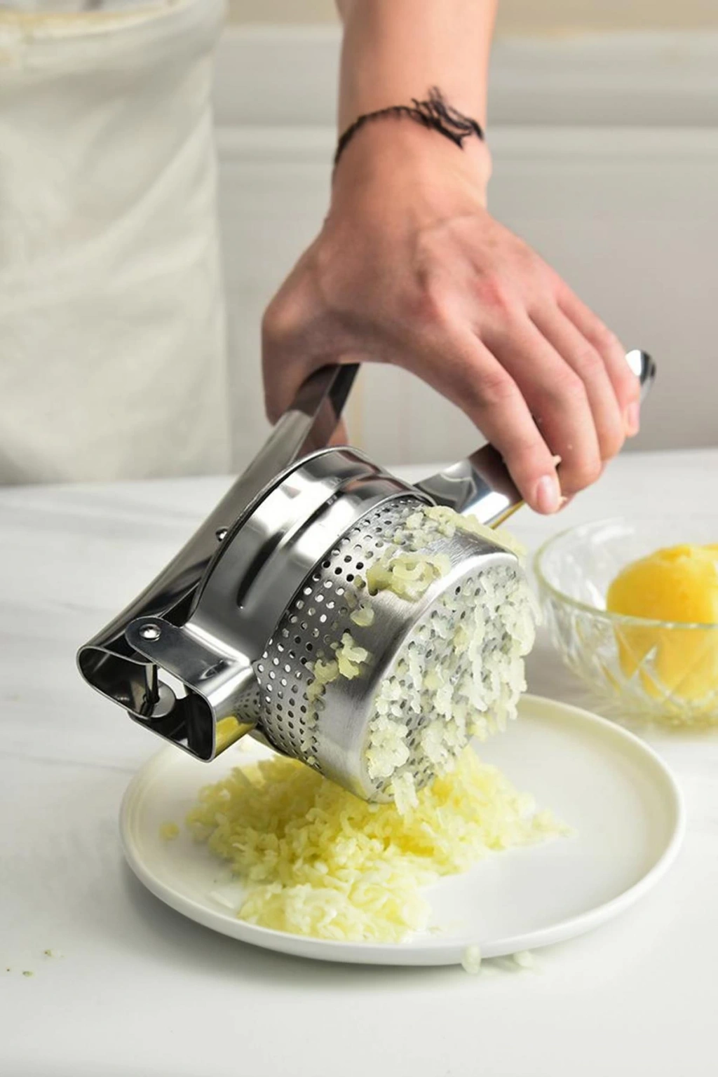 Mutfaklarda pratikliği ön planda tutan paslanmaz çelik patates ezme aparatı, pürüzsüz patates püresi ve sebze ezmeleri hazırlamanızı kolaylaştırır. Sağlam yapısı ve ergonomik tasarımı ile uzun yıllar kullanım için idealdir.