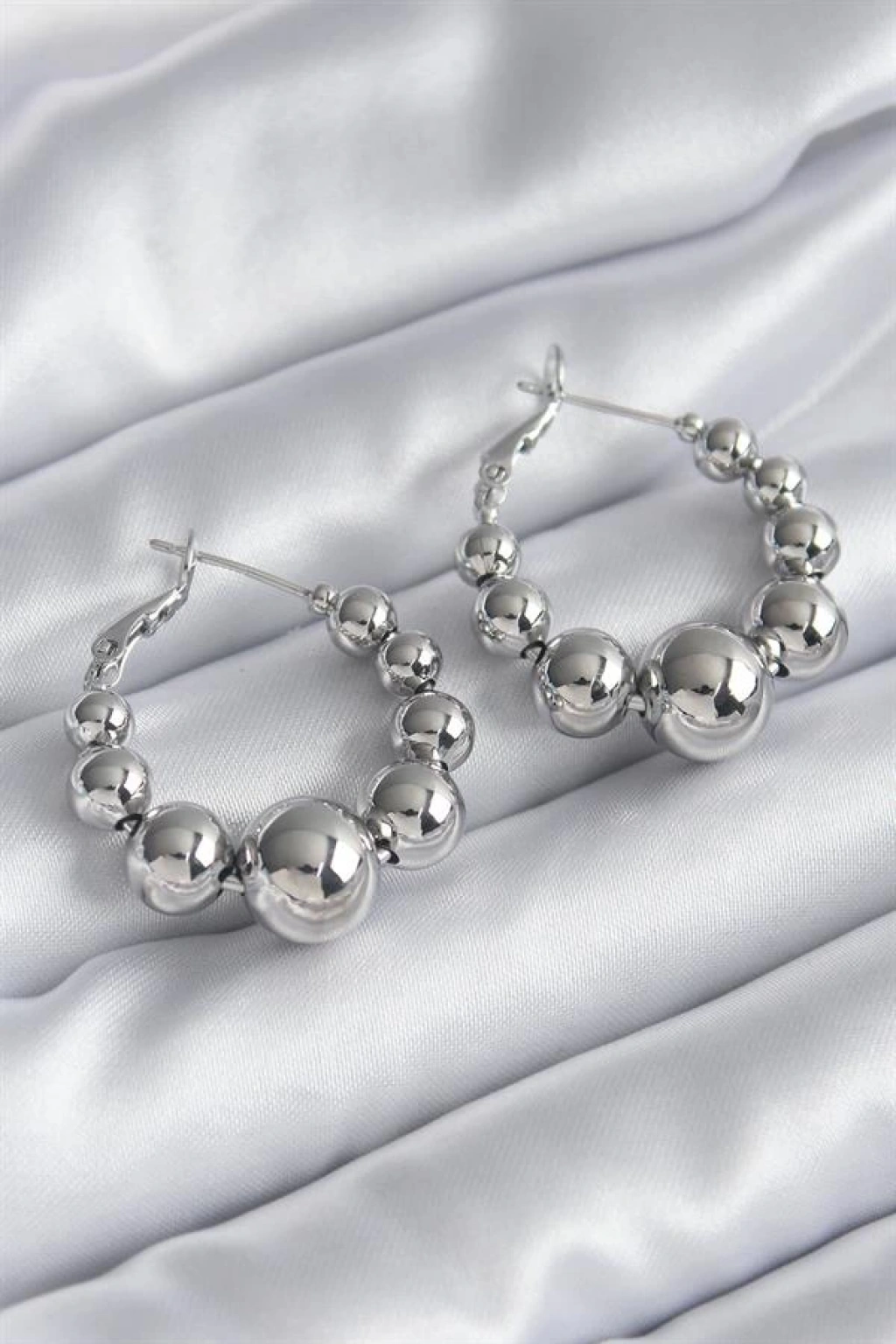 Pirinç Gümüş Renk Halka Model Kadın Küpe