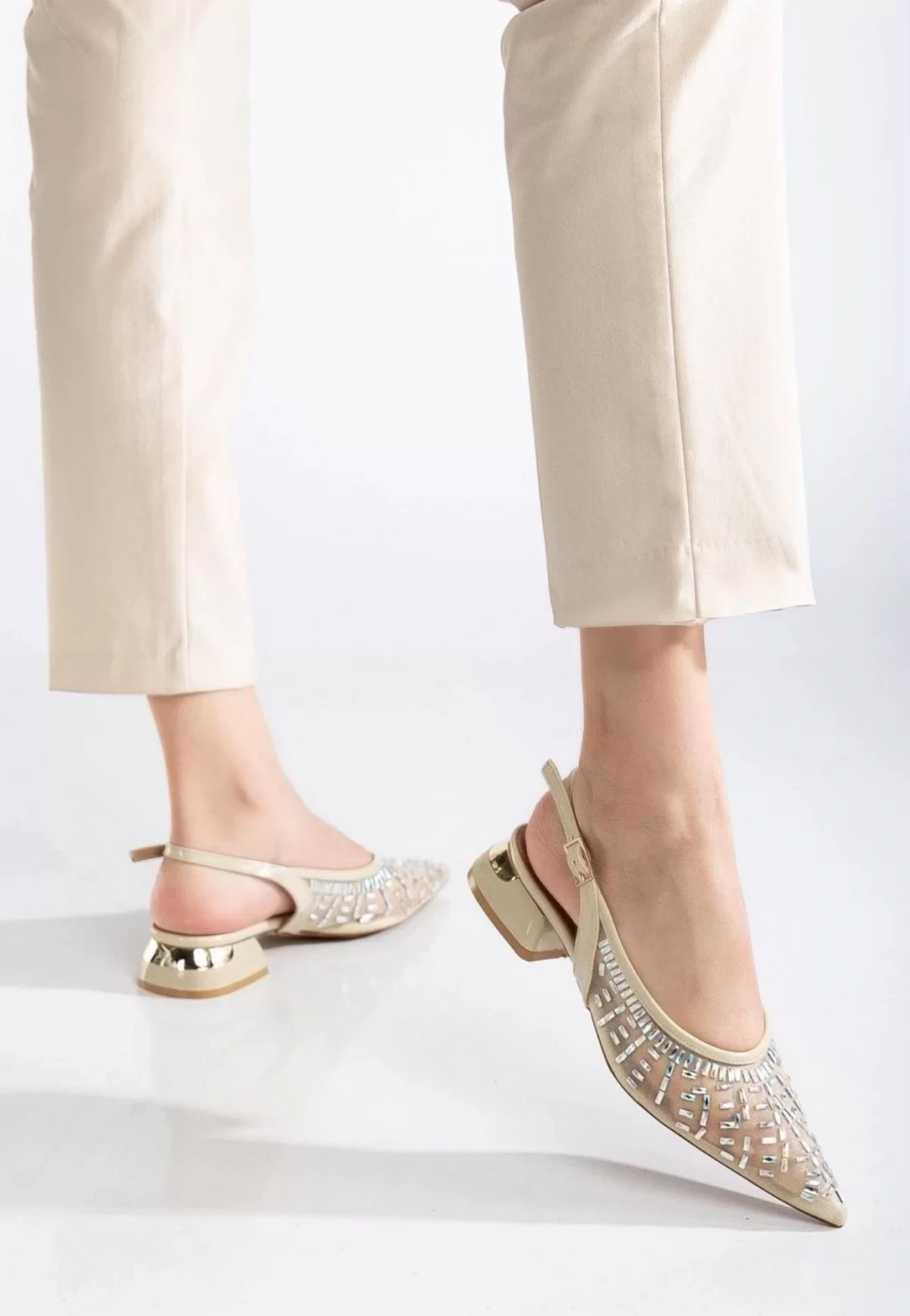 Piyar Bej Taşlı Topuklu Ayakkabı