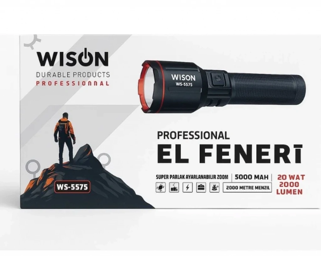 WS-5575 profesyonel el feneri, avcılar ve doğa tutkunları için özel olarak tasarlanmış, yüksek performanslı bir şarjlı el feneridir.