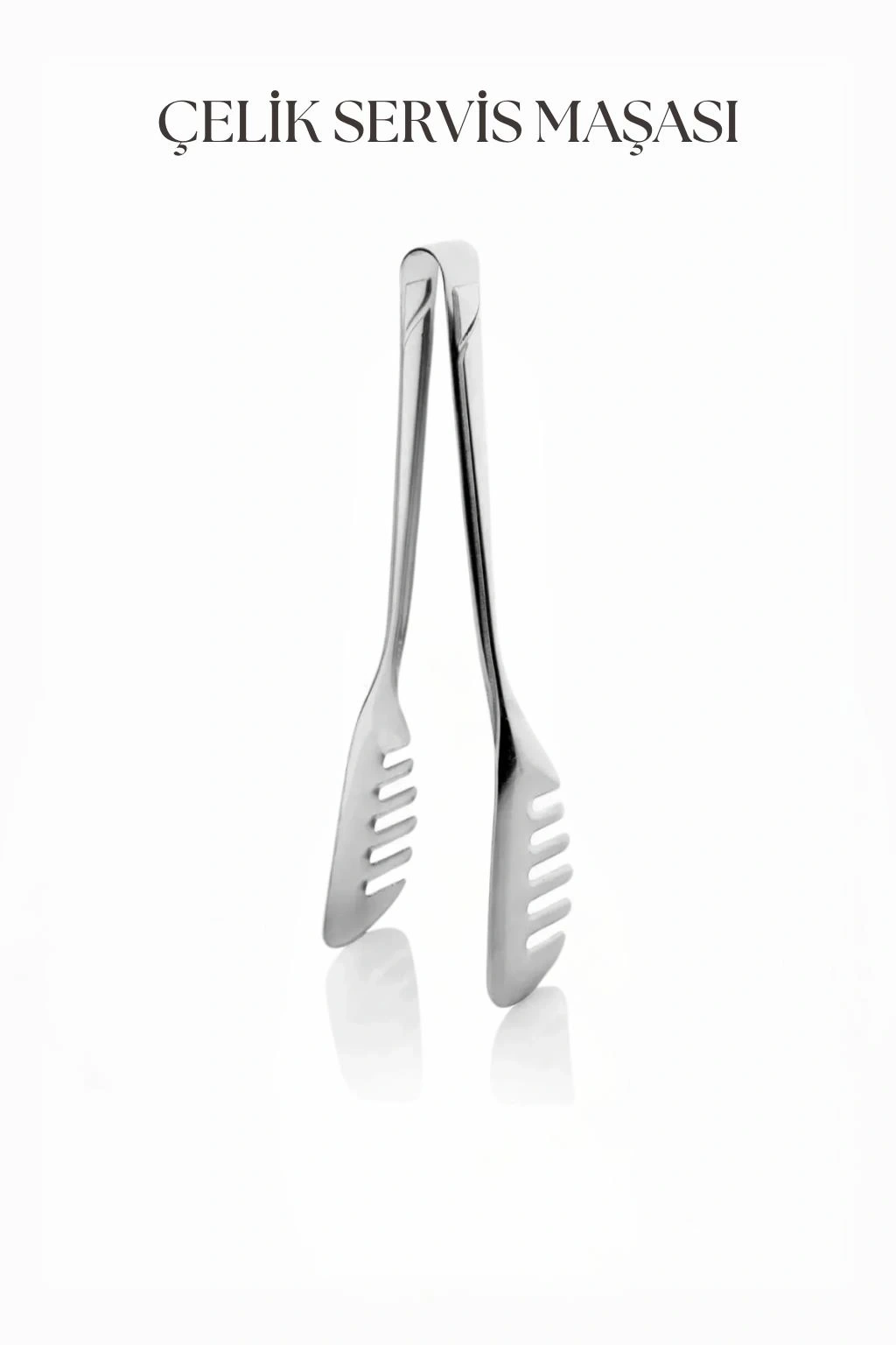 Ürün Hikayesi: 22 cm paslanmaz çelik servis maşası, hem günlük kullanımlar hem de şık sunumlar için idealdir. Sağlam çelik yapısı ve zarif tasarımı ile sofranıza şıklık katar, yiyecekleri güvenle servis etmenizi sağlar.