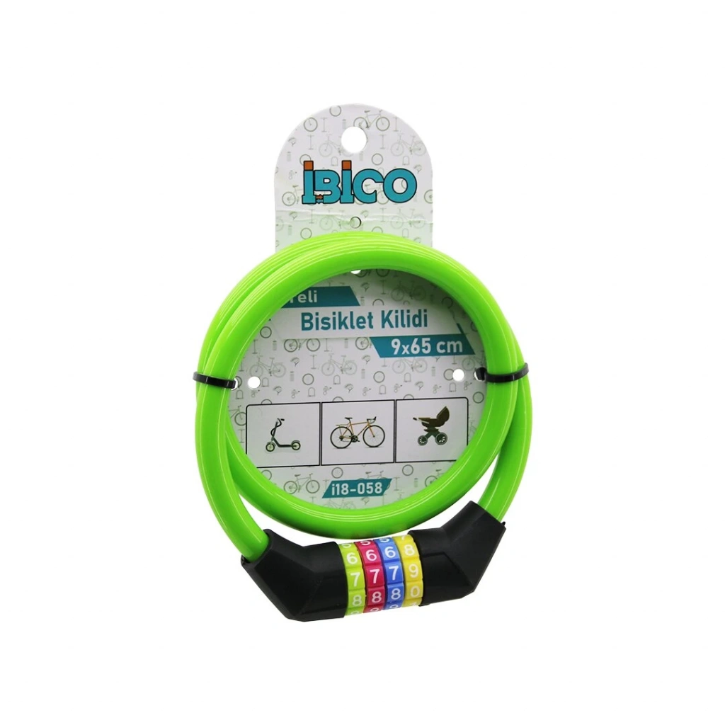 ŞİFRELİ İNCE BİSİKLET KİLİT ÇELİK TEL YEŞİL RENKLİ KILIF 9MMX65CM