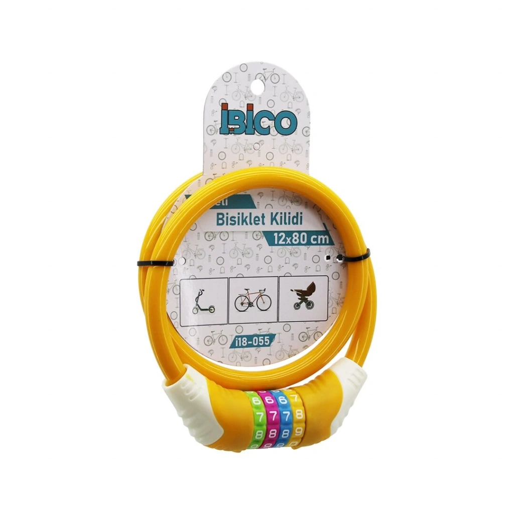 Anahtarlı Plastik Kafa Bisiklet Kilit Çelik Tel Renkli Kılıf 12mmx80cm