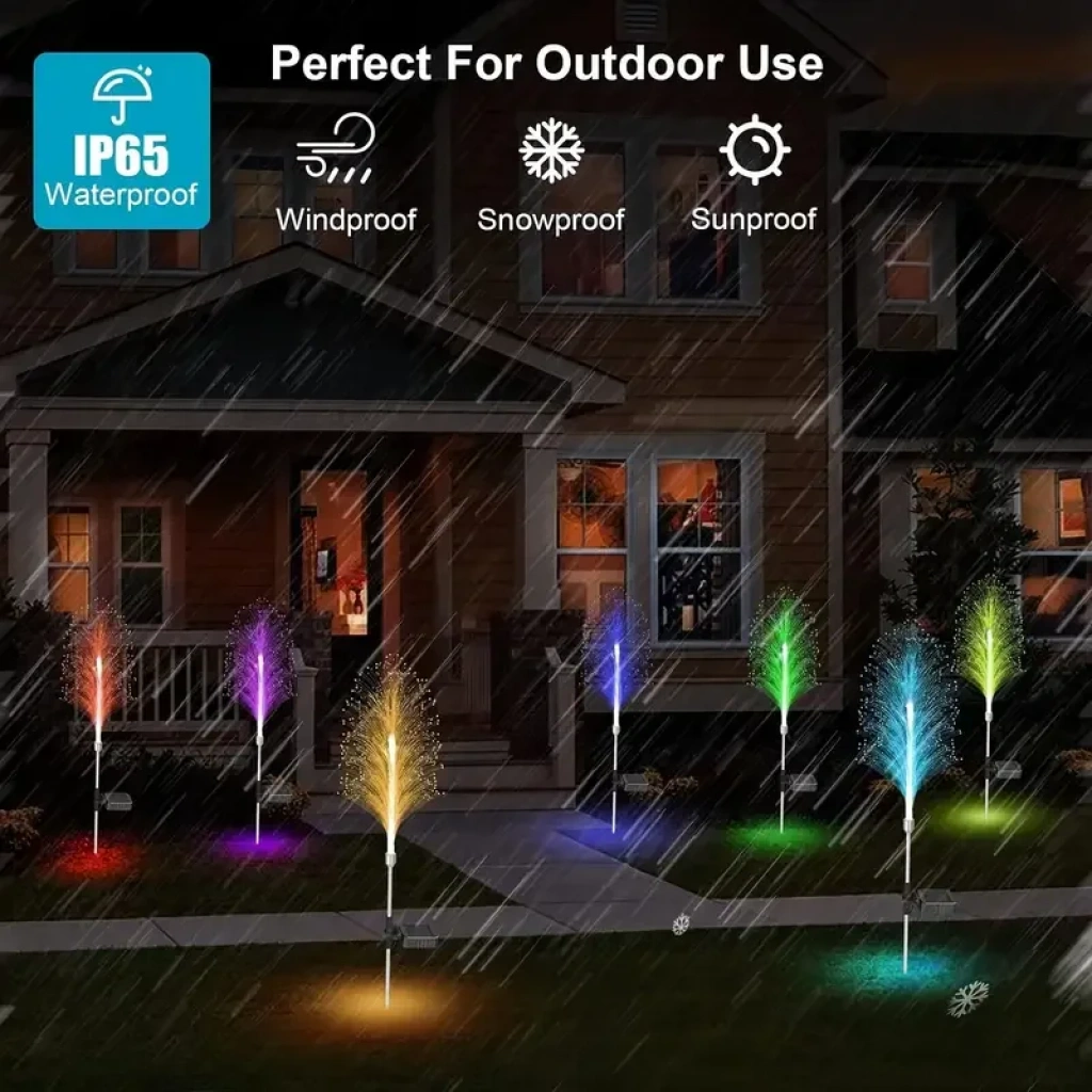 Solar Bahçe Işıkları Açık Hava Dekoratif, 7 Renk Değiştiren Fiber Optik Işıklar, 2 Paket Güneş Enerjili Işıklar