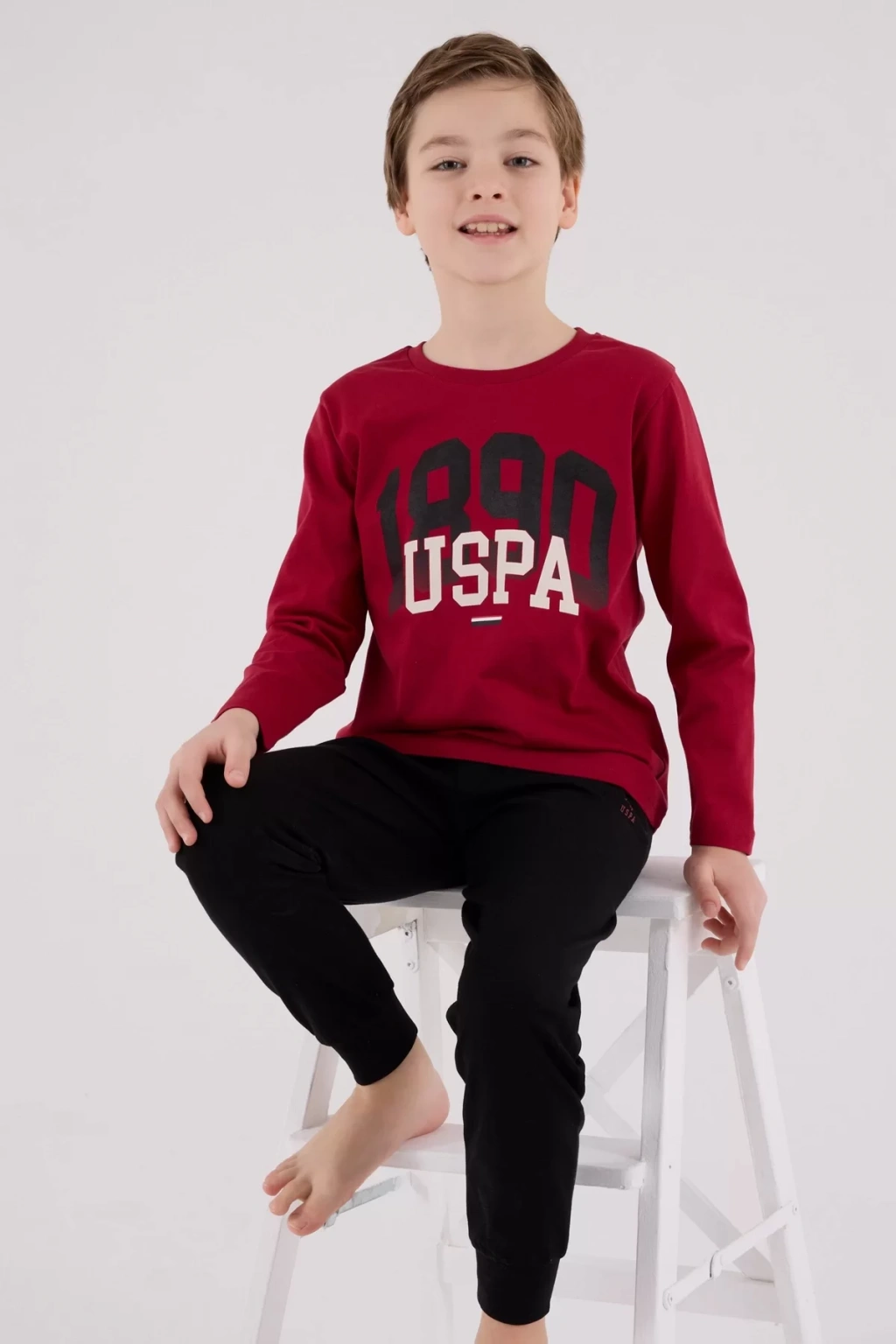 U.s. Polo Assn Uzun Kol Pijama Takım Us2203-4 Bordo