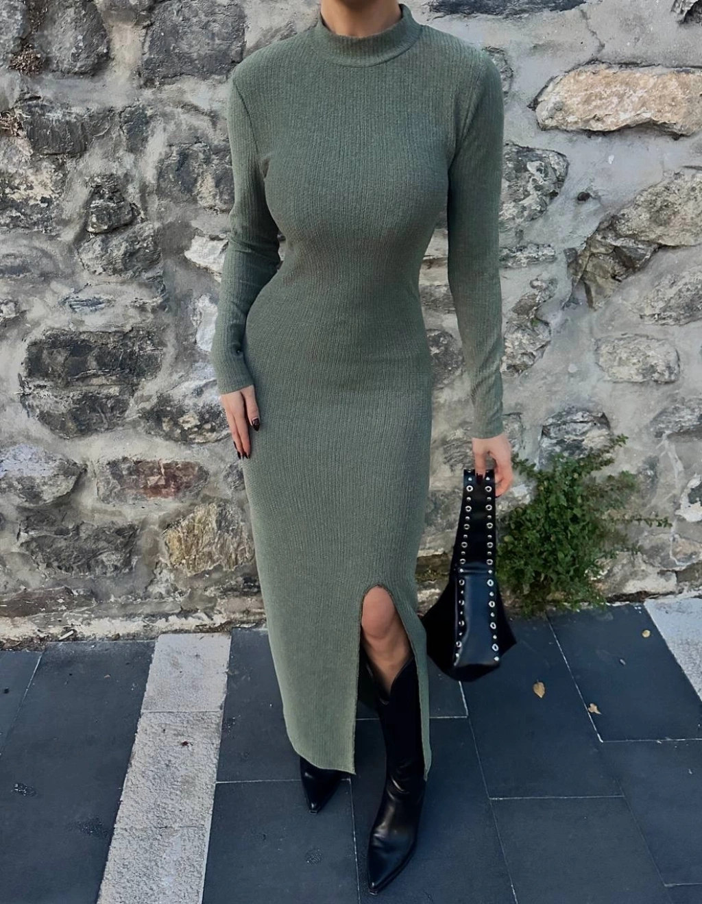 Yırtmaç detayı ile hareketli bir stil oluşturur.