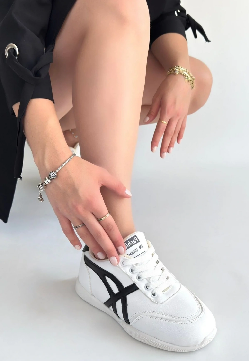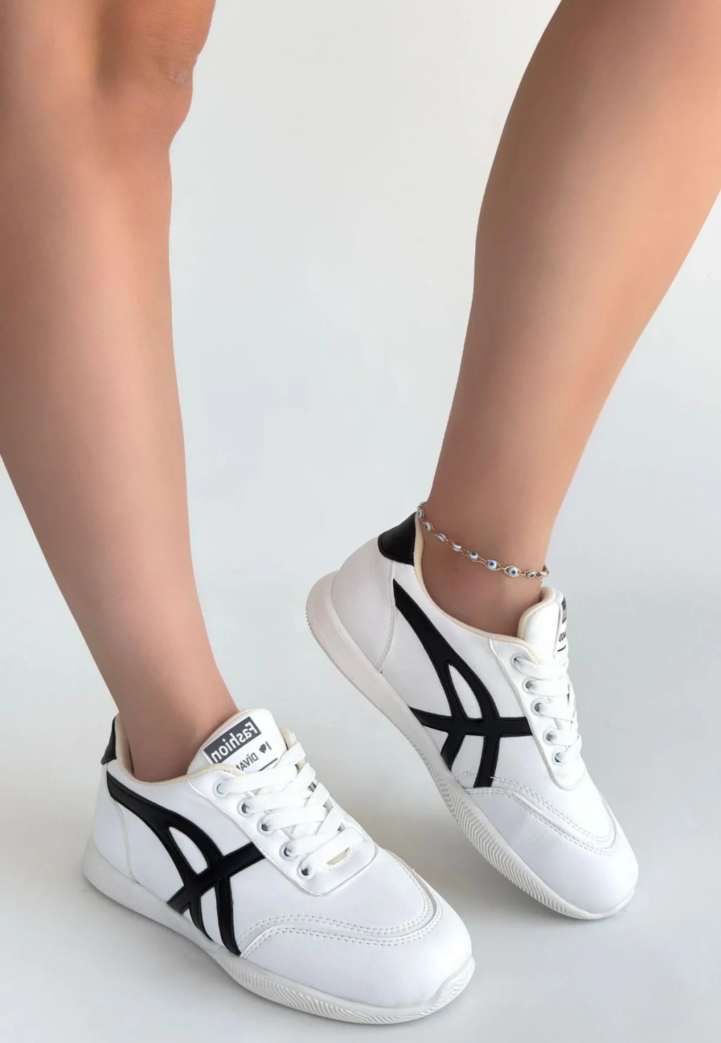 Zlay Beyza Cilt Siyah Detaylı Bağcıklı Spor Ayakkabı